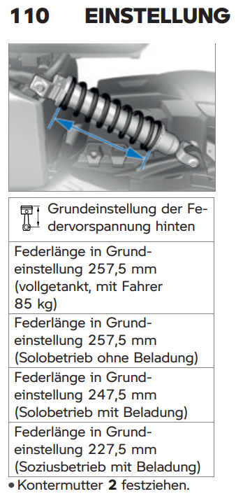Willst du etwa sagen da steht Quatsch drin ? Ich finde es schon wichtig Fahrwerkseinstellungen ( es gibt nur die Vorspannung der hinteren Feder bevor jemand sucht ;) ) bei vollem Kraftstofftank zu machen. 8-)