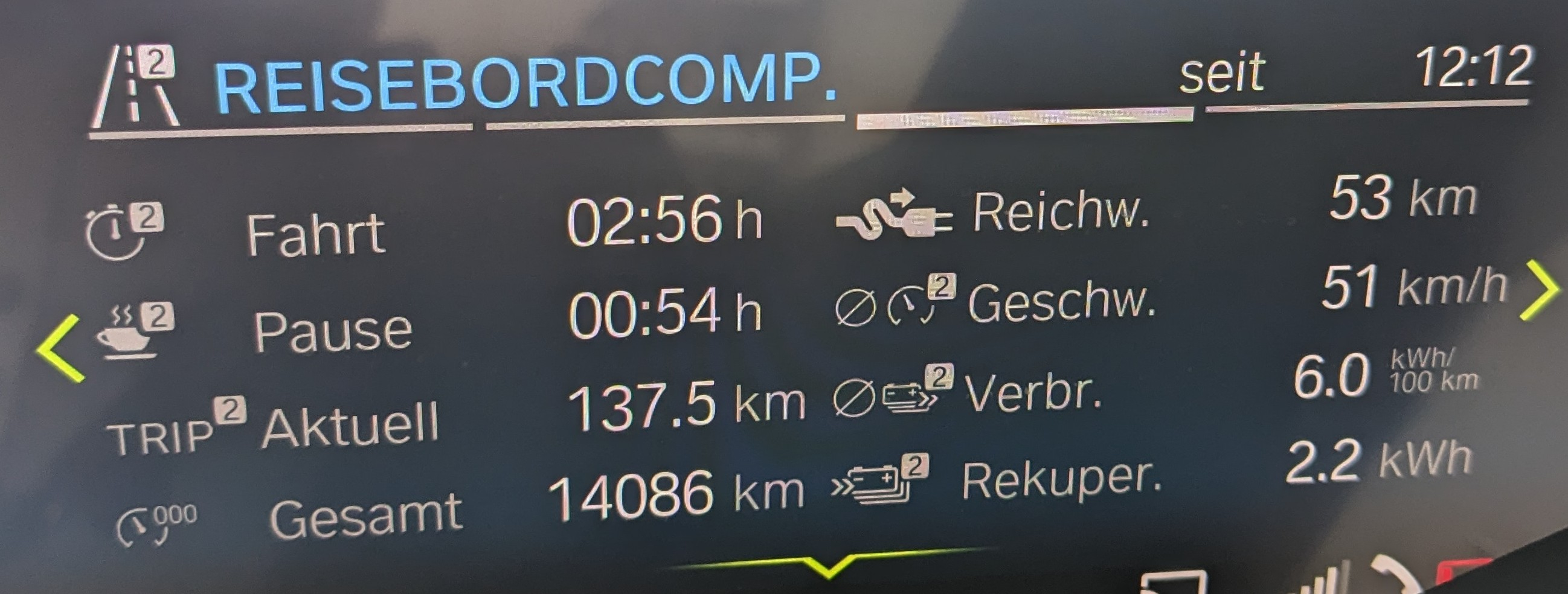 Die vielen ABS Einsätze haben auch ihre Erklärung. Nein, ich bremse nicht wie bekloppt. Ich bremse quasi garnicht. Das ist vollautomatisch, wenn bei rissigen Bergab-Stellen die Rekuperation abgeregelt wird. Auch das zählt das System (zurecht) als ABS.