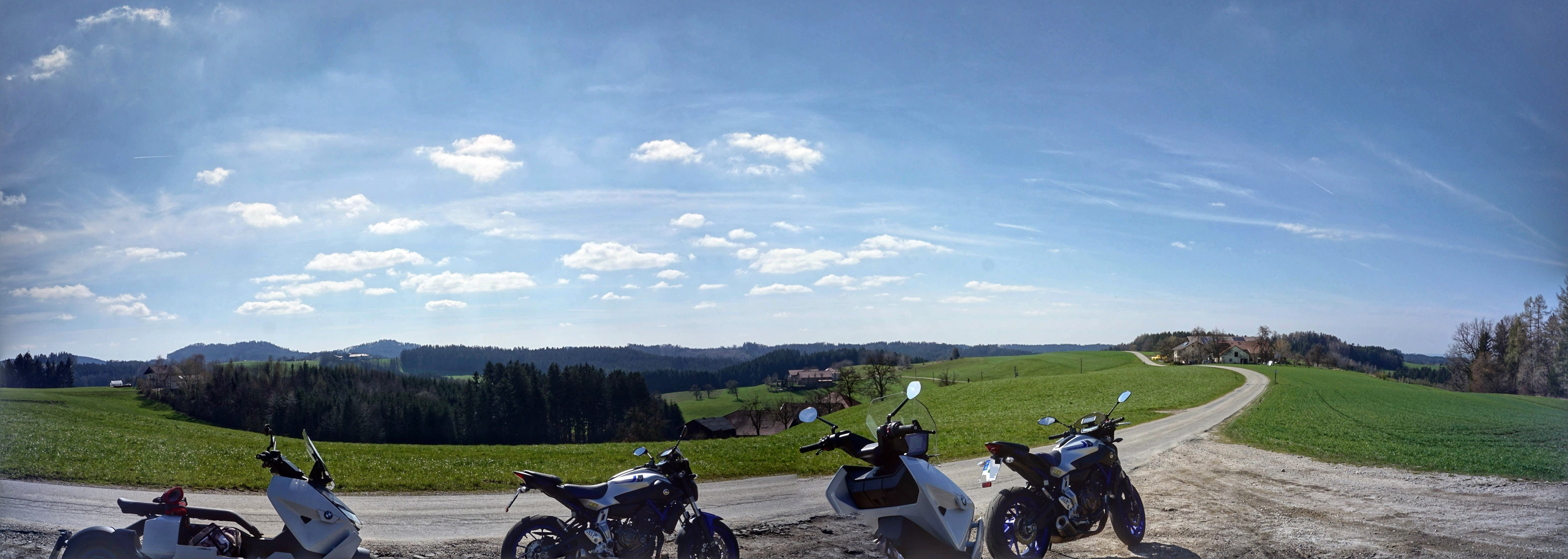 Und wieder zu Hause. Mussten stark verkürzen auf 140km, weil meine Frau sehr gefroren hat. Am Motorrad verständlich, es war trotz angezeigter 9-11°C ein ekelhaft eisiger Wind, permanent. Die Sonne hatte leider keinerlei wärmende Wirkung.