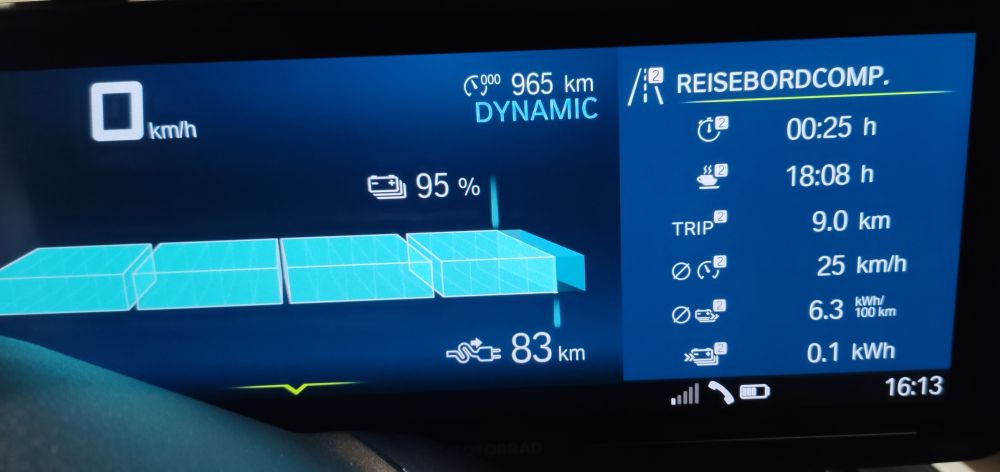 Lasst Euch aber nicht von der Reichweitenprognose verarschen, die ist eine Mimose, immer einen Löffel Dünnes in der Büx.