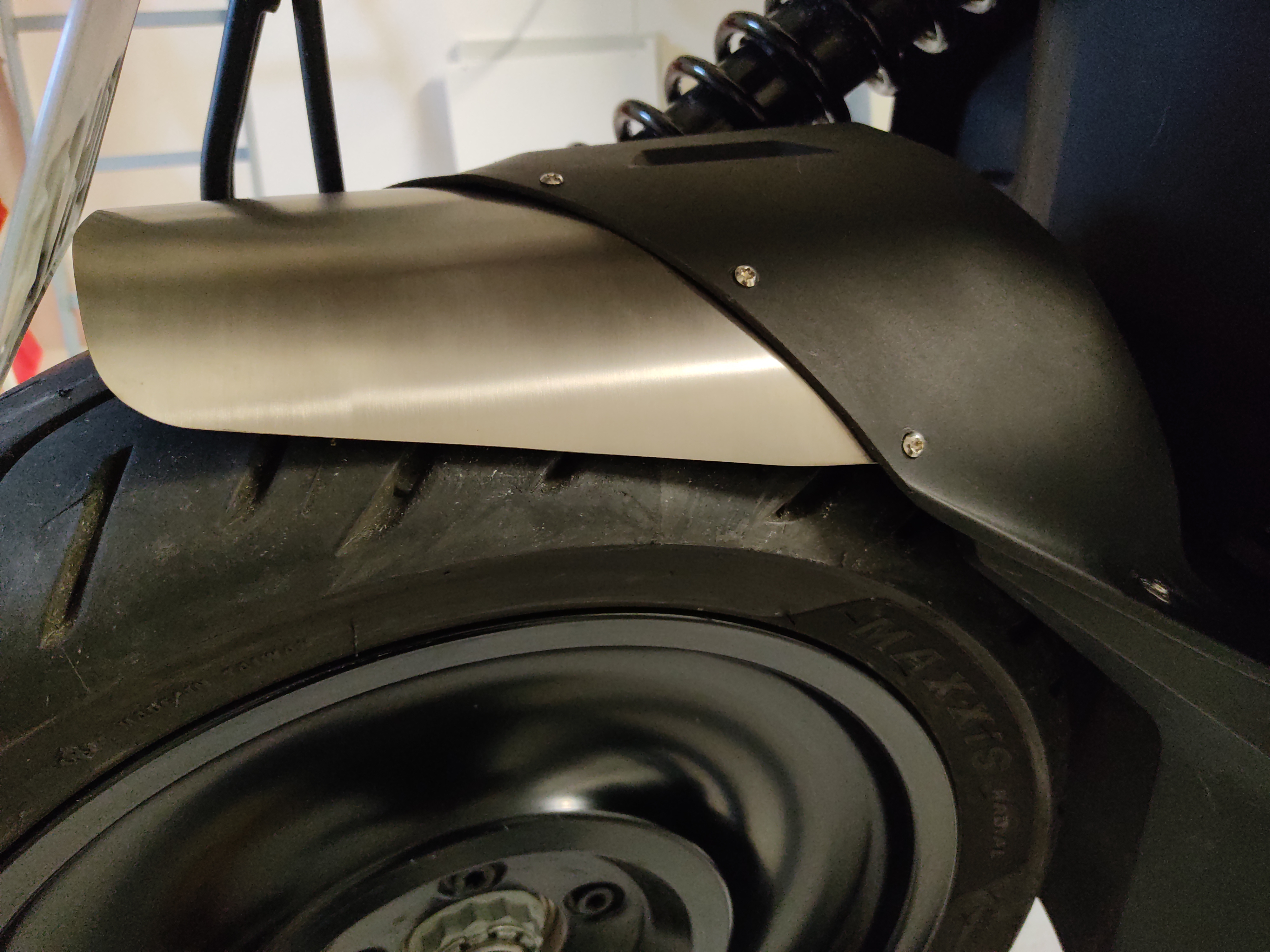Ich habe etwas nachgearbeitet. Der Hauptgrund war nicht das ich oder die Sitzbank Wasser/Schmutz angekommen habe bei Nässe sondern das der misst halt auch Richtung unter die Sitzbank bzw. Motorabdeckung usw. gelangt. Ein Stück Titanblech eines defekten Akrapovic Schalldämpfers konnte ich überreden hier leise Dienst zu tun.