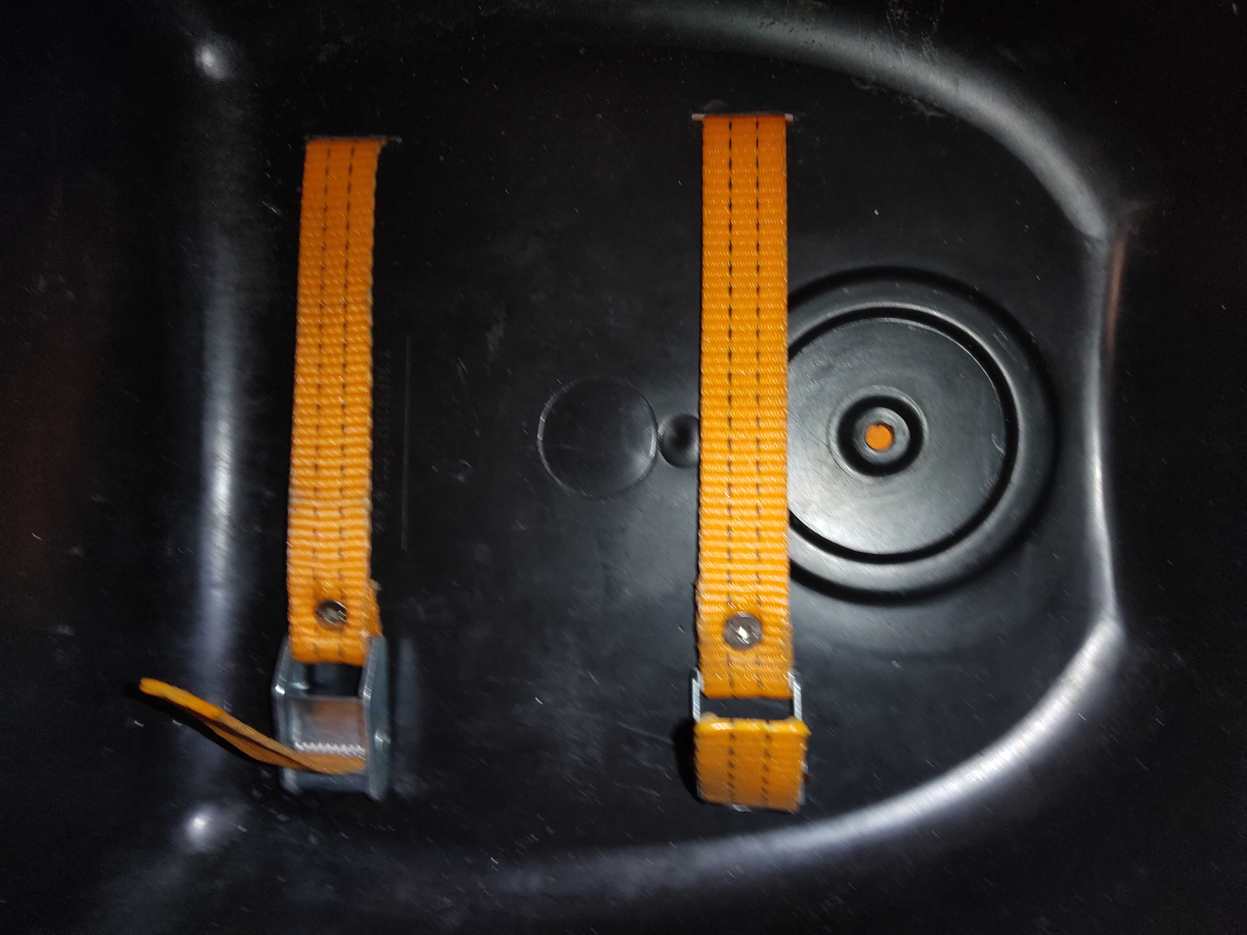 Hier nun meine Finale Lösung für den Koffer bei bedarf. Er ist in 1m montiert. Es ist ein zurrgurt ohne ratsche reicht aber völlig da er sich der Koffer gegen die Sitzbank zieht.