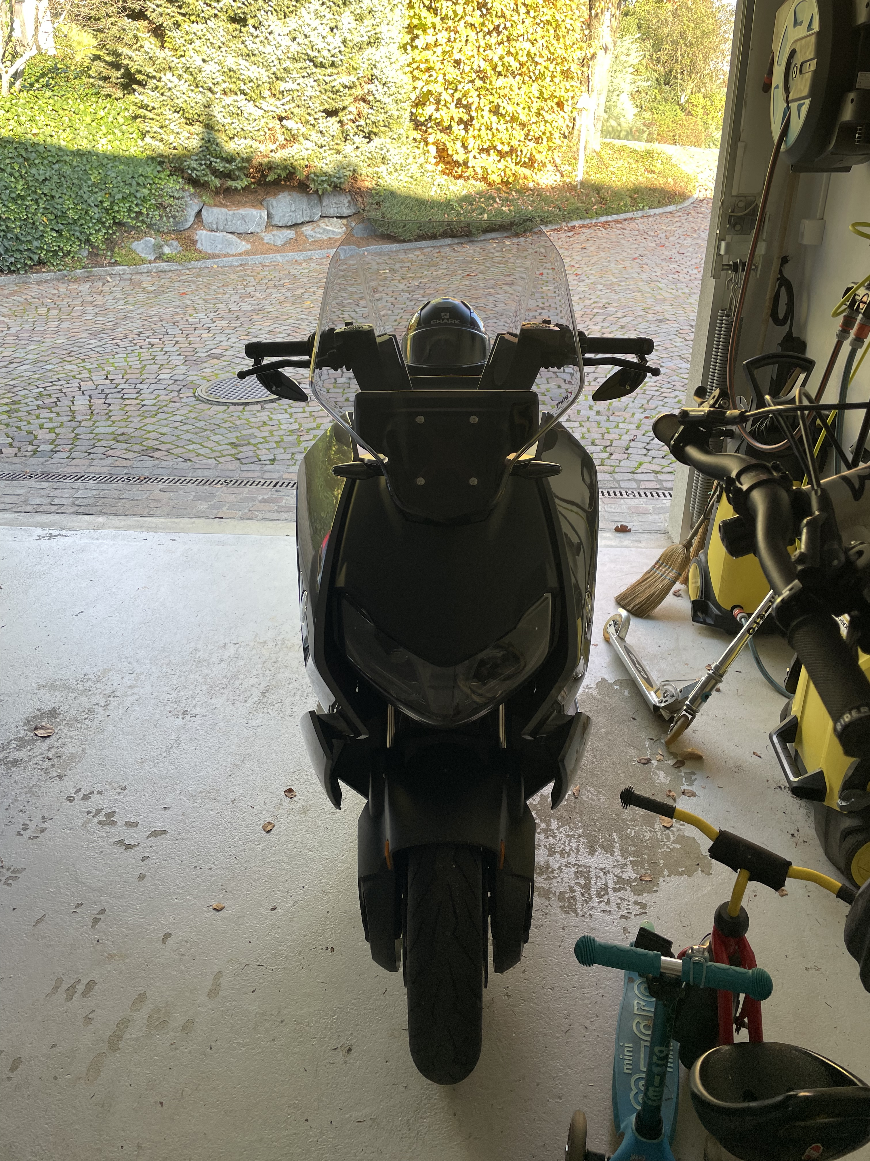 Muss mal noch richtig testen. Für mich aufgeund der schnittigen, nach hinten geneigten Form die schönste hohe Windschutzscheibe.
