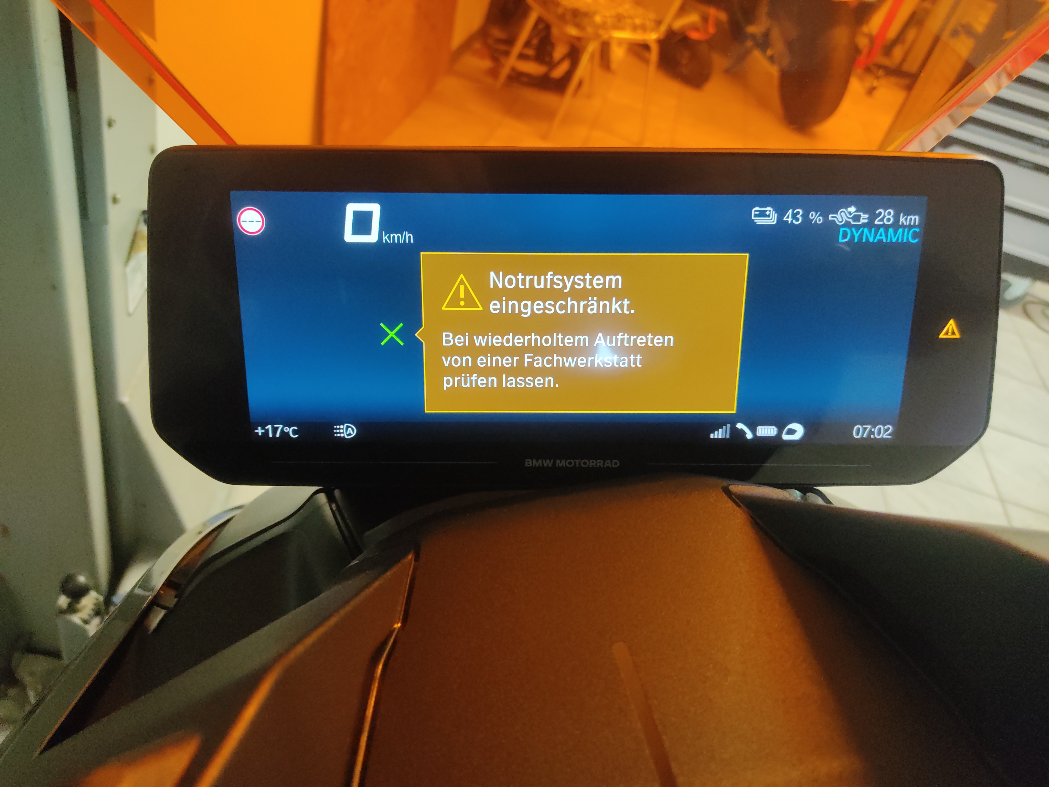 Notrufsystem eingeschränkt kommt meines Wissens, wenn kein Empfang da ist. Also nix tragisches.