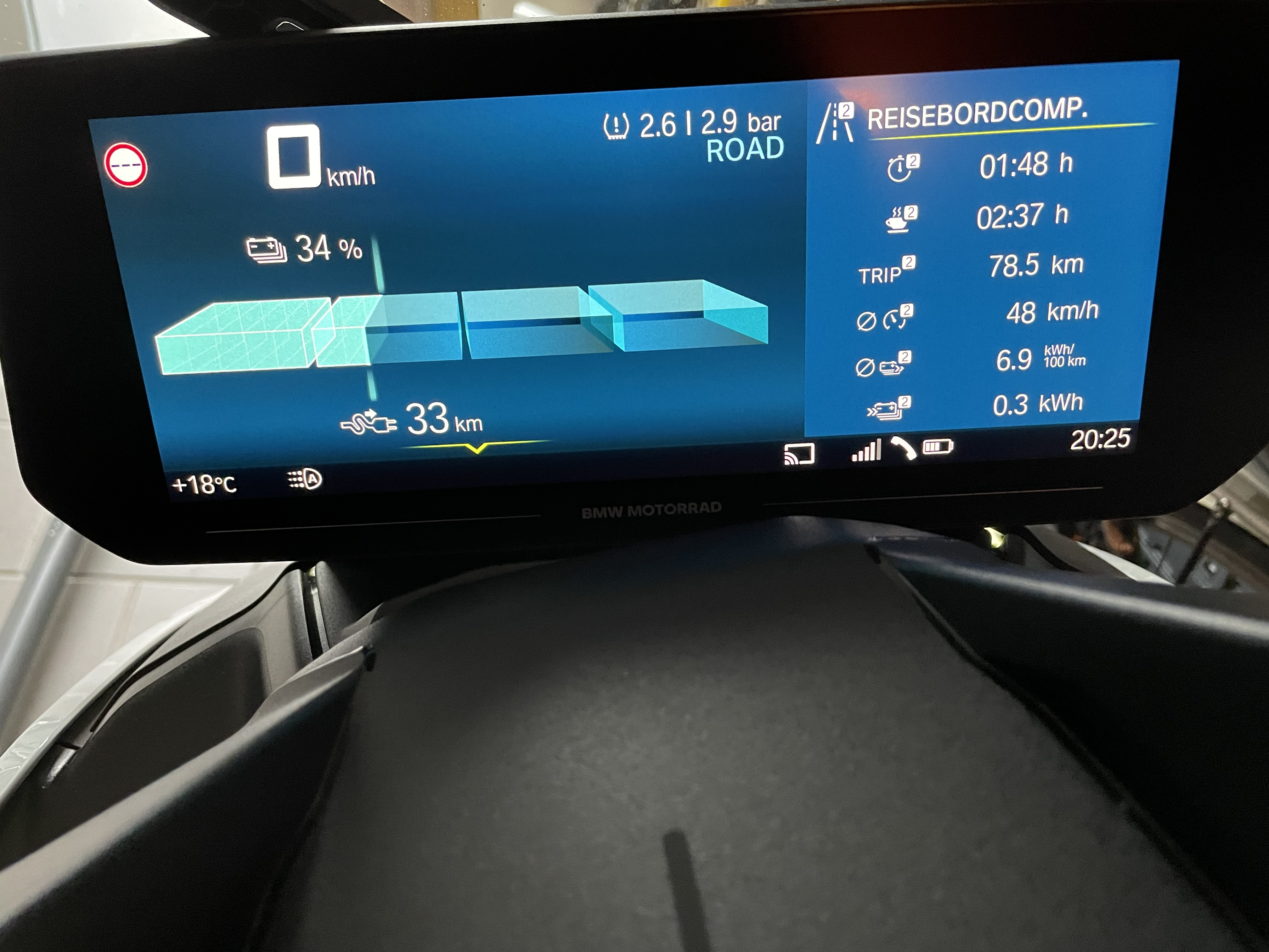 In meiner kindlichen Neugier habe ich auch bereits eine Idee geboren. Ob ich das jemals ausfuehre, wage ich zu bezweifeln. Wie weit kaeme man mit dem CE 04, wenn man konstant 45km/h faehrt, also eine ungefaehre Niu N1S Simulation. Leider hat der BMW keinen Tempomat, sonst waere das erheblich einfacher realisierbar. Auf unseren wenig befahrenen kleinen Hinterlandstrassen koennte man sowas ohne weiteres mal machen, aber man sitzt sich dann mind. 3h den Hintern platt. Ich will nicht so fahren, keine Frage. Aber ich wuerde gerne mal so einen Vergleich zwischen meinen beiden E-Rollern ziehen, die ja unterschiedlicher nicht sein koennten.