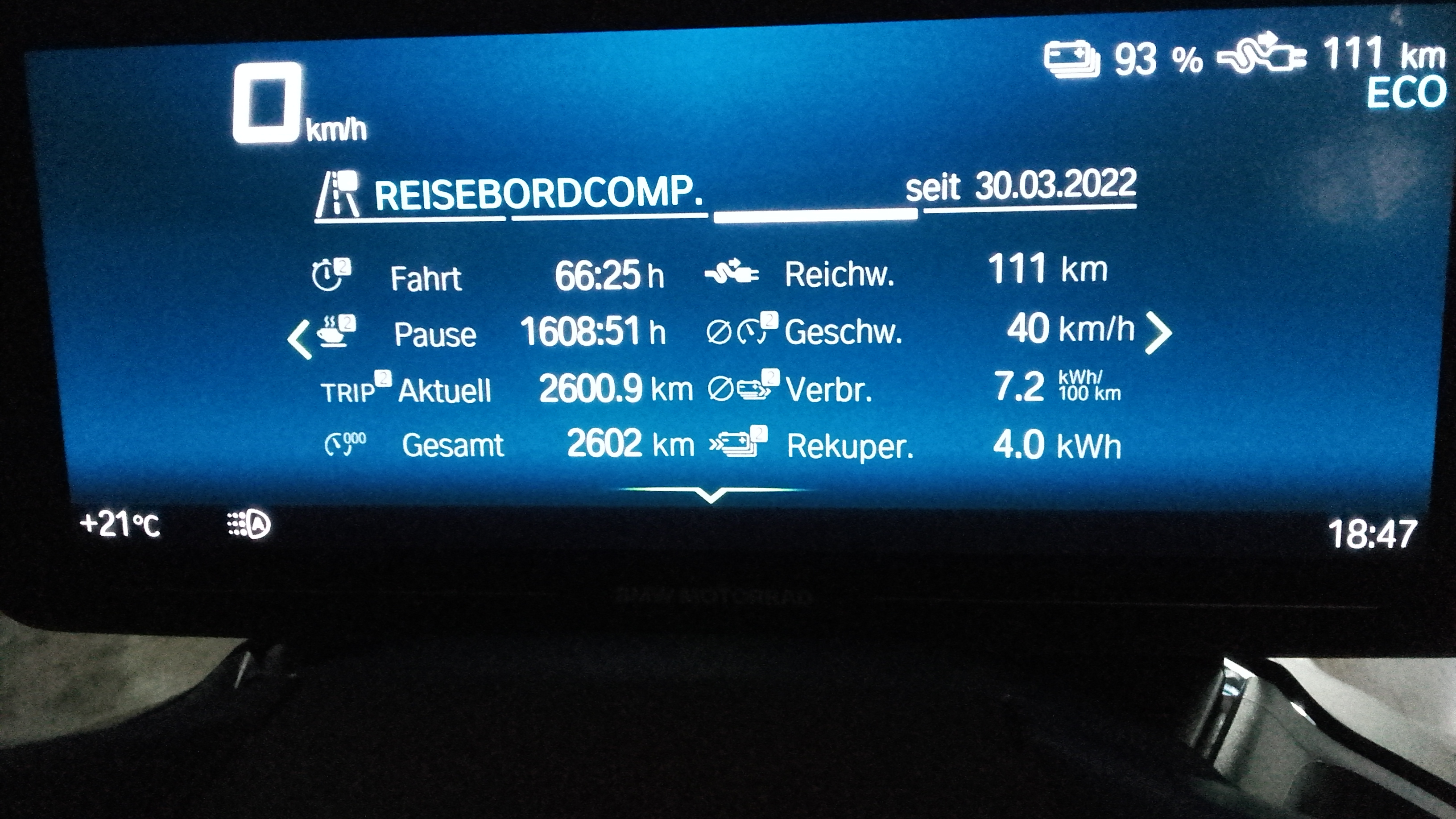 Ich bleibe erfreulicherweise bei sehr ähnlicher(/m) Fahrweise und Streckenprofil wie vorher mit dem 650er Benziner in Verbrauchsregionen um die 6kWh/100km.