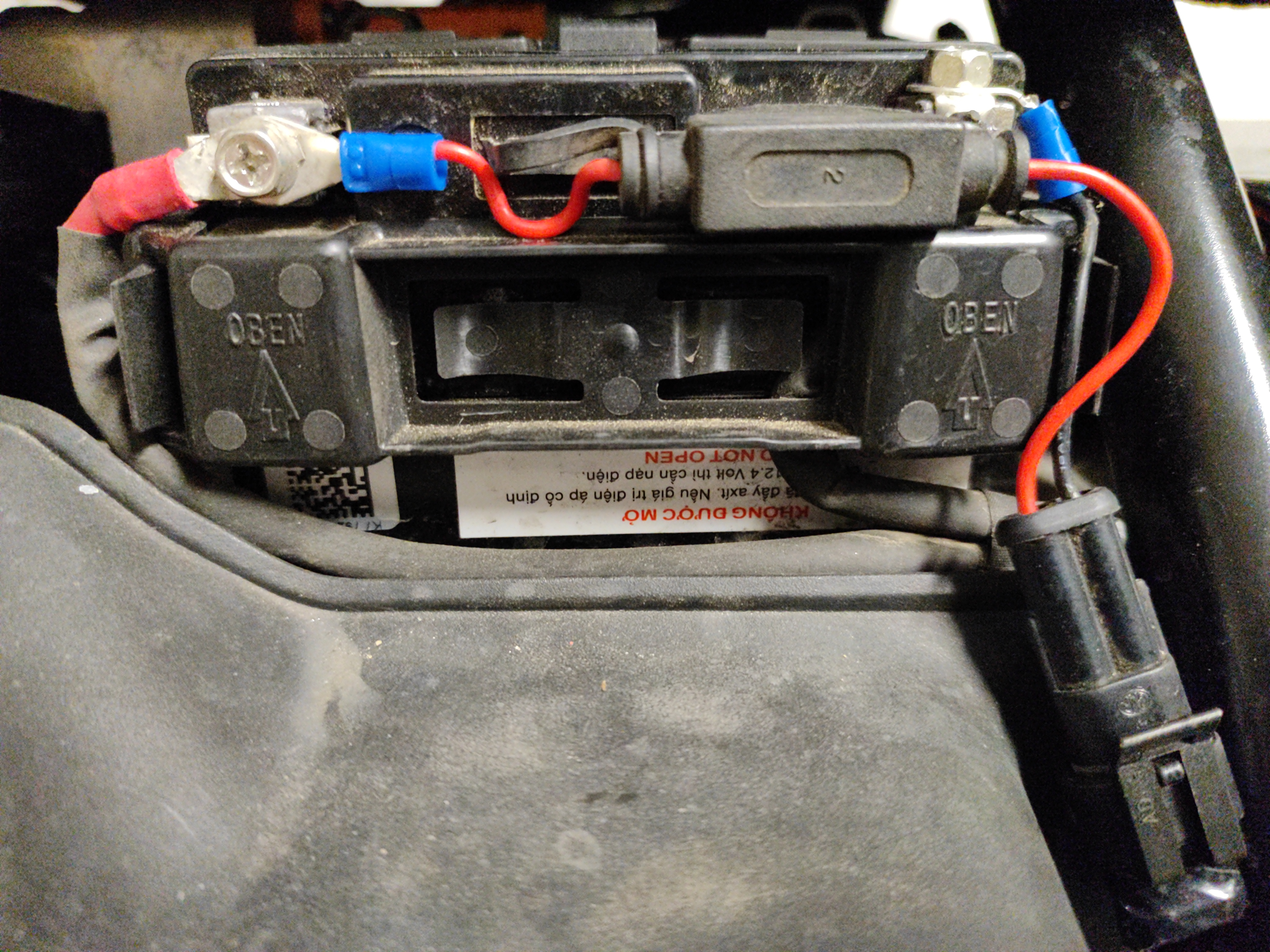 Ich hab mal für zukünftige Update und Programmierungsorgien für einen externen Zugang zum Akku gesorgt. Abgesichert mit 10A und einem abgedichteten Amp Superseal Stecker/Kupplung.