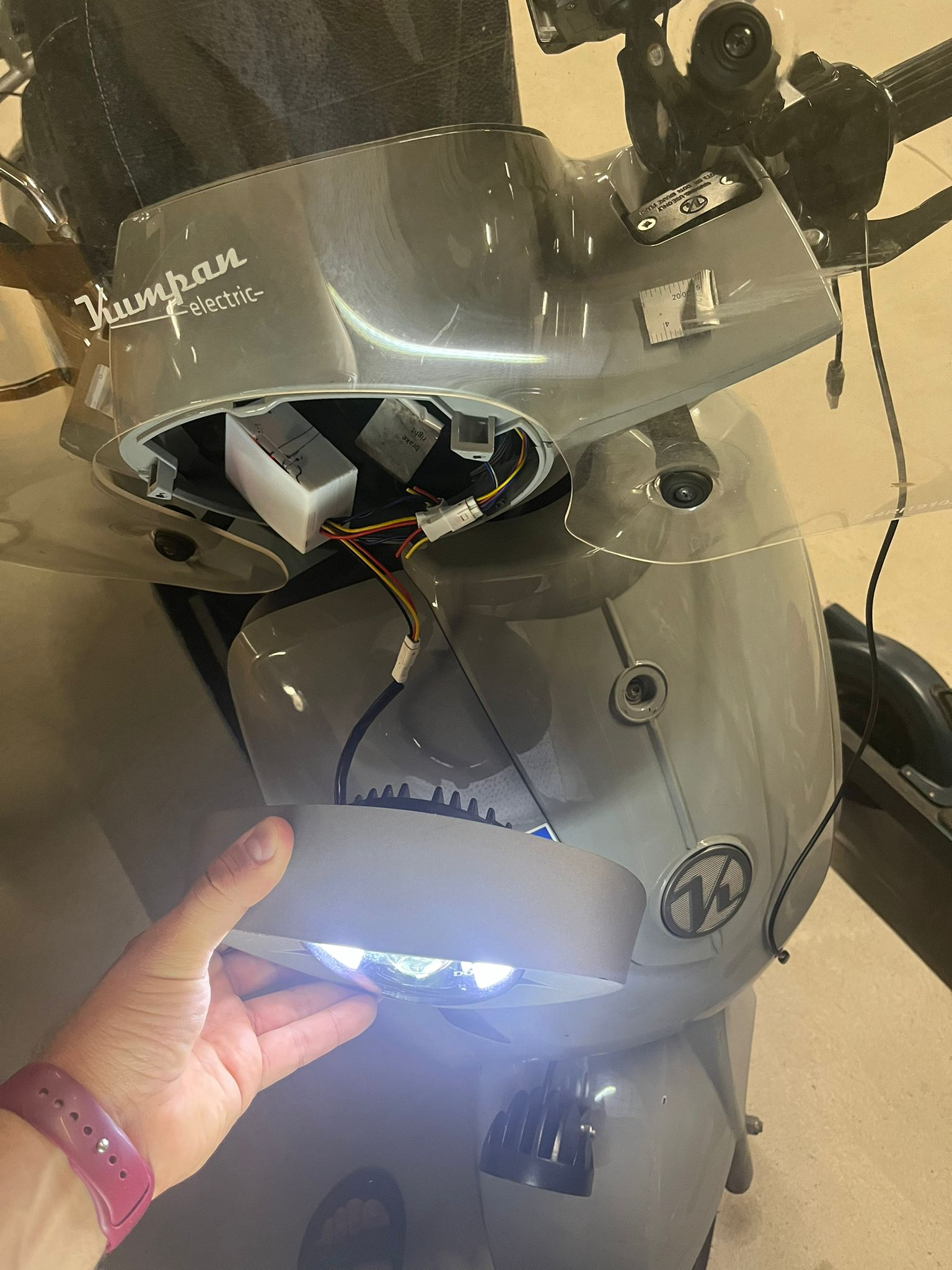 Das Modul bezieht strom über den Hauptscheinwerfer, dies damit nicht 24/7 strom verbraucht wird.