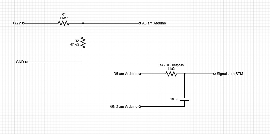 Das Ergebnis ist, dass ich die Versorgungsspannung für den Tacho mit einem DC Wandler auf 48V umwandle und die Batteriemessung mit dem Arduino nachgestellt habe.