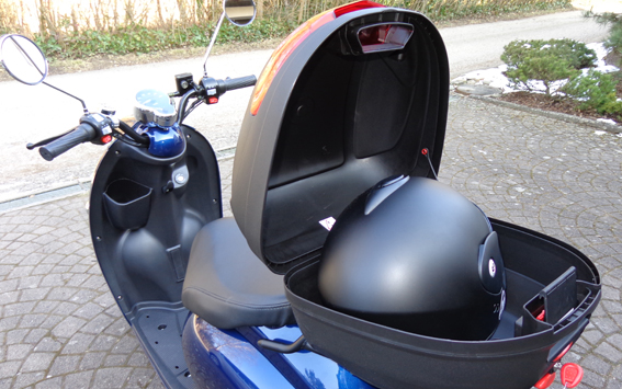 Und auf Anraten einiger Forenmitglieder habe ich meinen Gepäckträger verstärken lassen und ein Givi-Topcase angebracht. Das sollte für's Erste heben