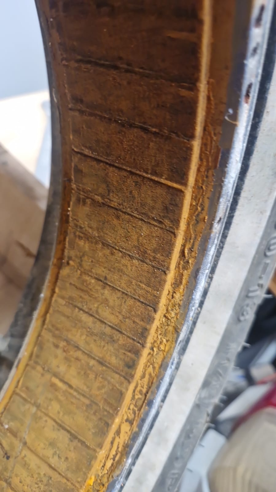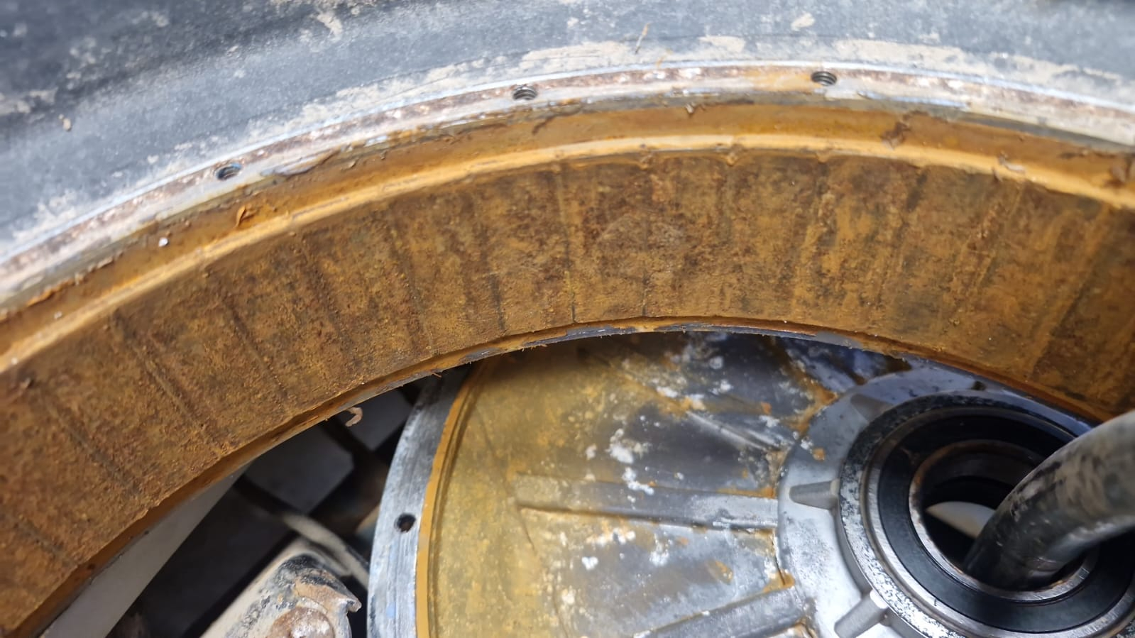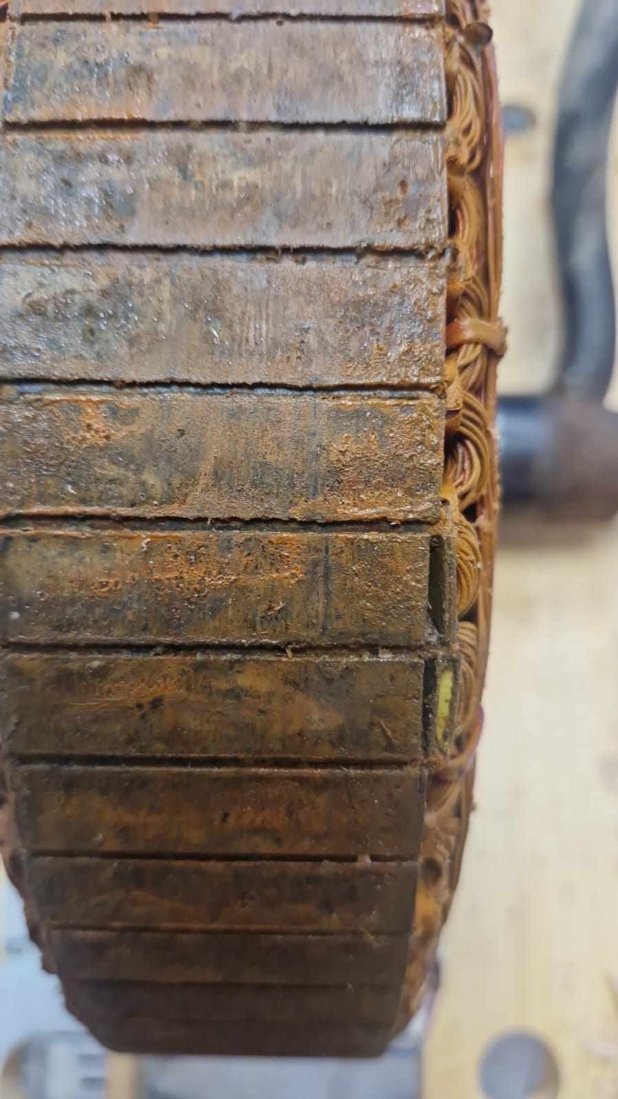 Von der hellbraunen Farbe der Wicklung im unteren Bereich würde ich auf Staub und Wasser schließen.