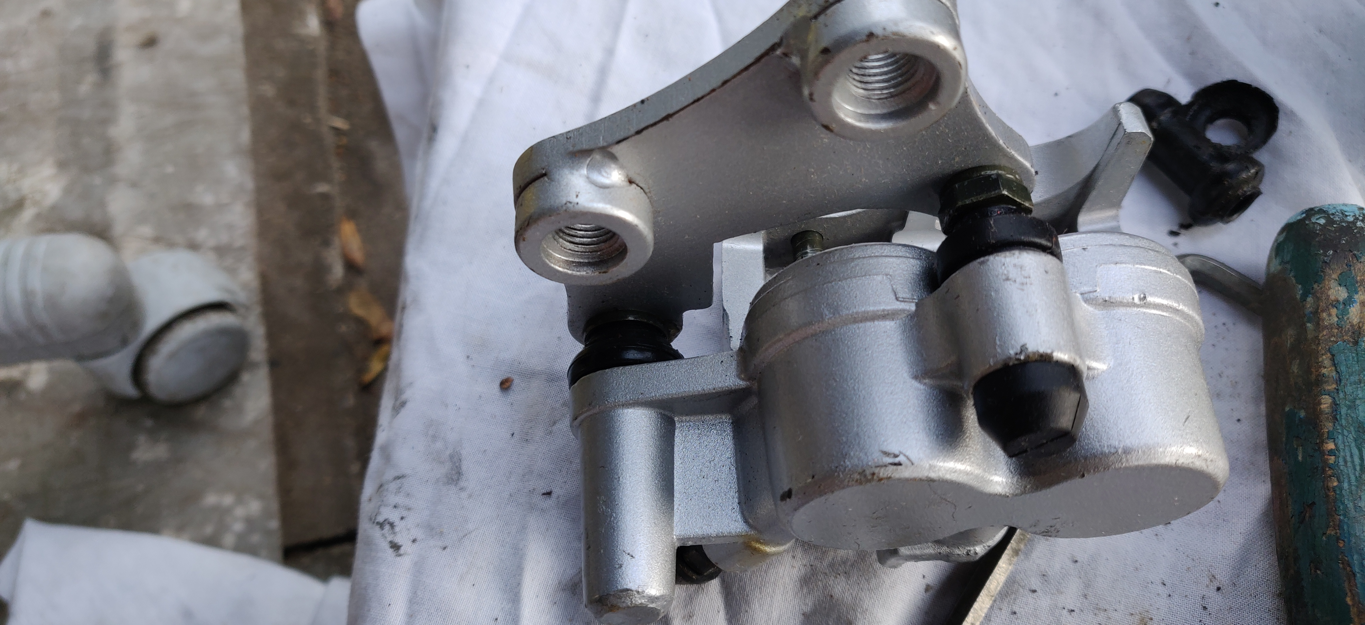 Alles grob reinigen, demontieren, fein reinigen, neue Gummis, Fett und Bolzen, Beläge und Federn gereinigt, Kolben gereinigt und gefettet. Rollt gleich viel besser. Beim Kauf waren die Bremssättel noch Mal als Ersatz dabei.
