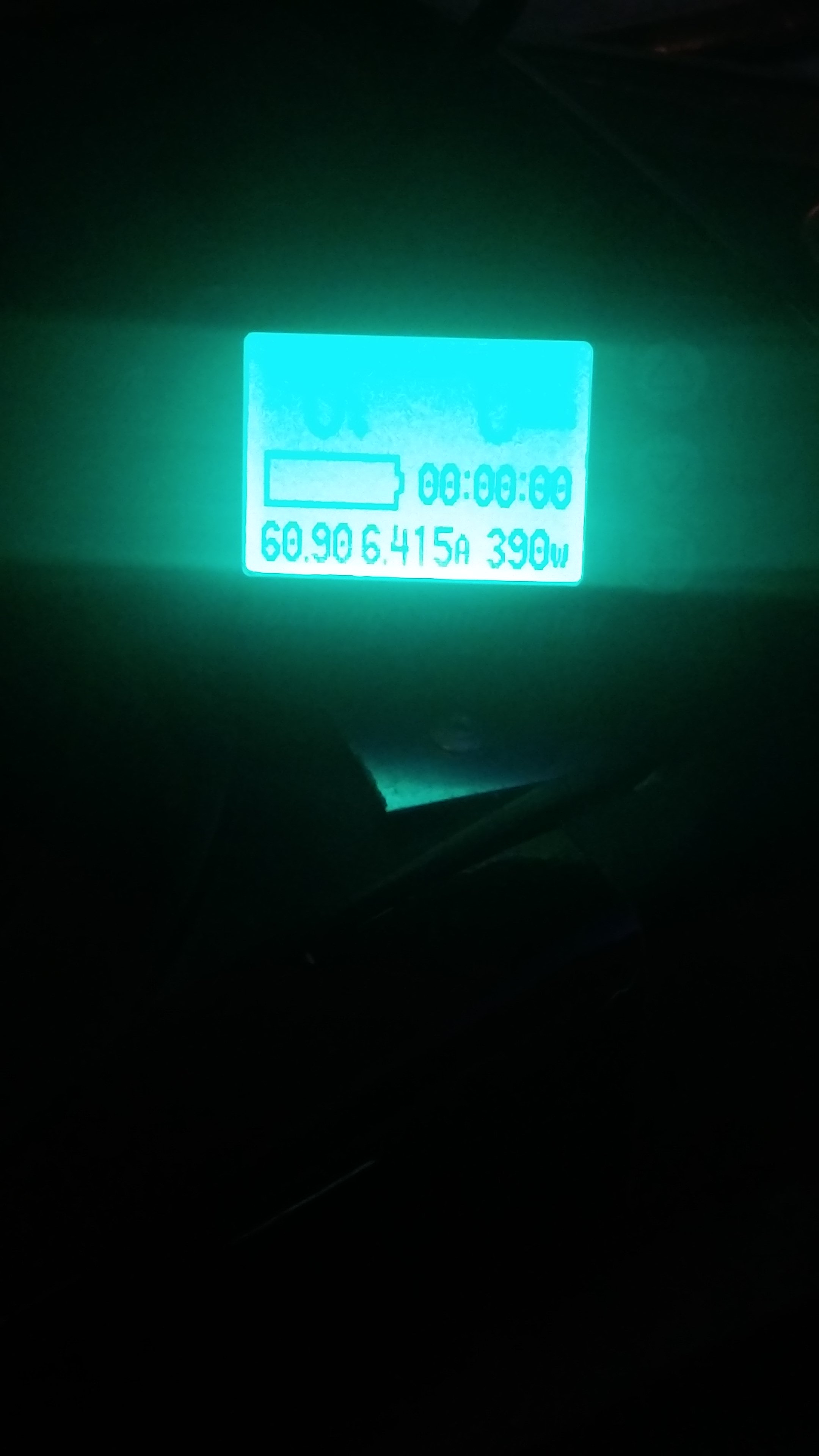 Das Gerät arbeitet seit gut 4 h, die Spannung ist von 59,8 mittlerweile auf 61,4 Volt gestiegen, die 6A brauchen da wohl ein wenig länger für meinen 40 Ah Block.