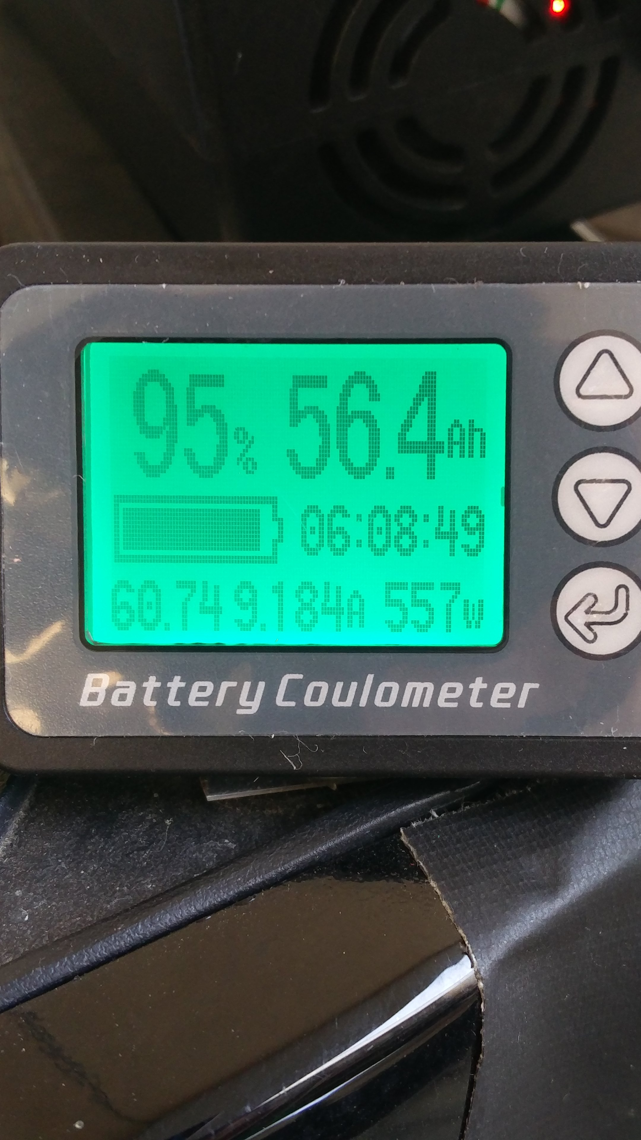 Nach 18 km Fahrt ist die Spannung bei 59,8V angekommen. Das Schätzeisen ist um 5 Uhr richtig an die Endstellung gesprungen, das Laden war gefühlt schon Mal gut.