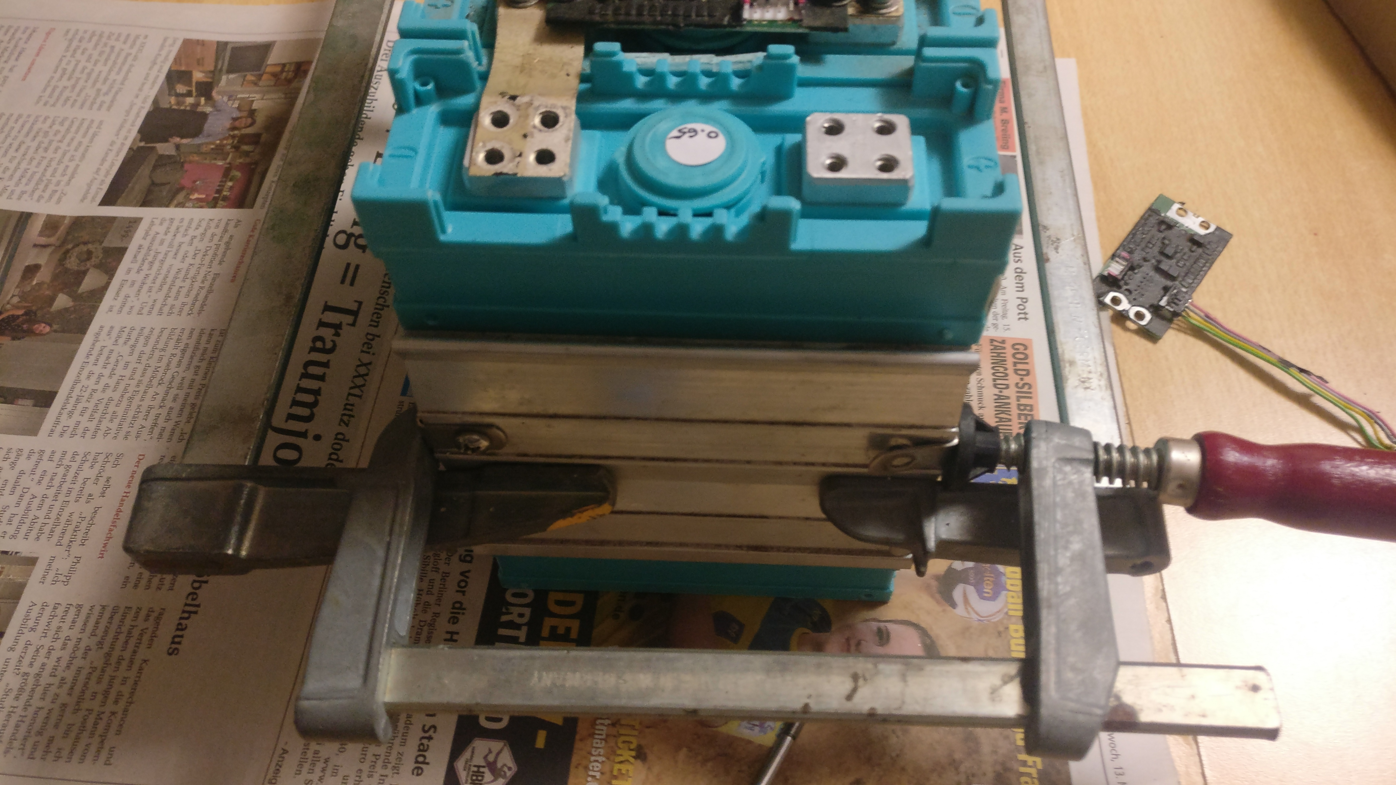 Schraubzwingen, Hände und passendes Werkzeug geholt.