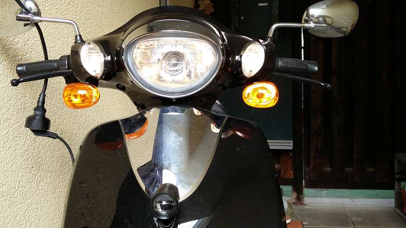 Die Verkleidung wird darum auf der linken Lenkerseite nicht wirklich am Lenker befestigt und somit kann man mit Druck auf die Schraube, die beide Teile verbindet, ein wenig die Richtung des Lichts bestimmen. Je nach Fahrbahnzustand klappert die Verkleidung dann auch auf der linken Seite.