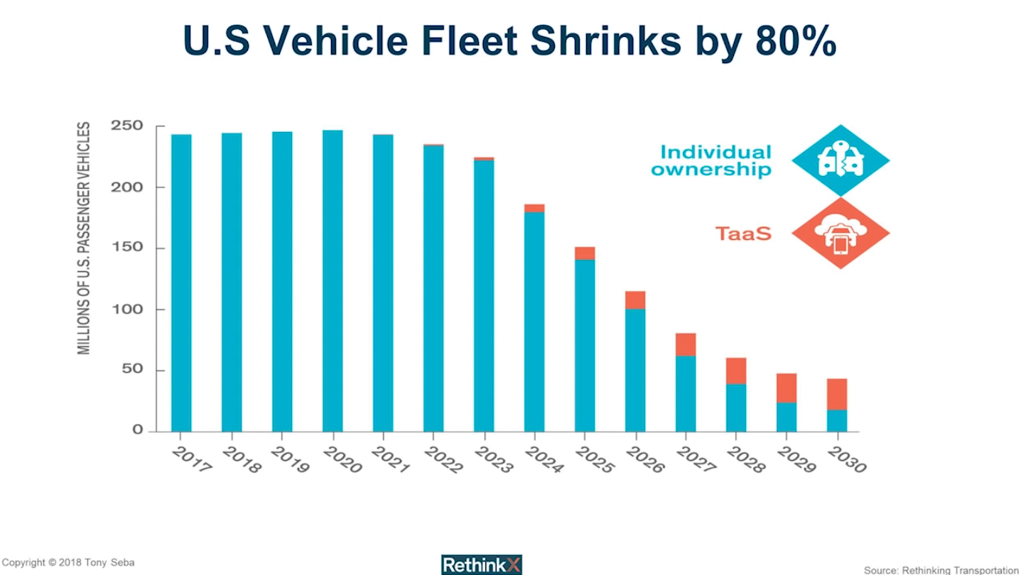 These - "Von 2021 - 2030 werden die Autoverkaufszahlen um 80% einbrechen." Tony Seba, 2018
