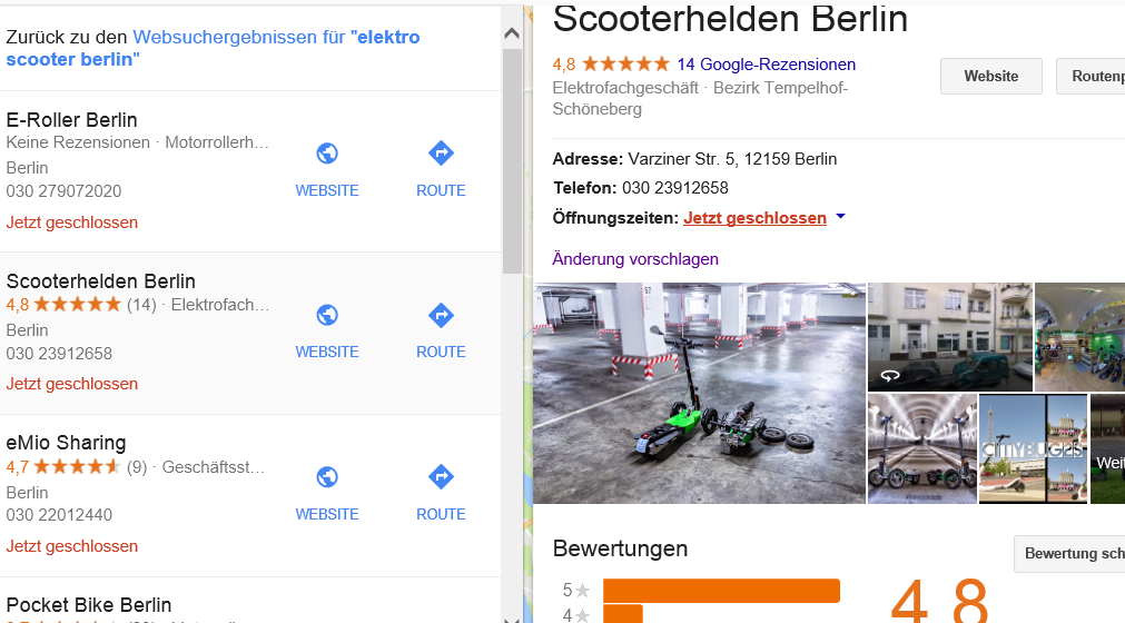 Prentzel Atze hat vermutlich Google Maps bemüht. Demnach ist die Strecke von Halensee (also dem westlichen Ende des Ku'damms) bis in die hinterste Ecke von Köpenick ca. 36 km lang. Sie führt über kleinkraftroller-taugliche Straßen (also keine Autobahnen oder Kraftfahrstraßen).el bosso hat geschrieben:woher nimmst du die info, wie weit es von köenick bis zum kudamm ist?