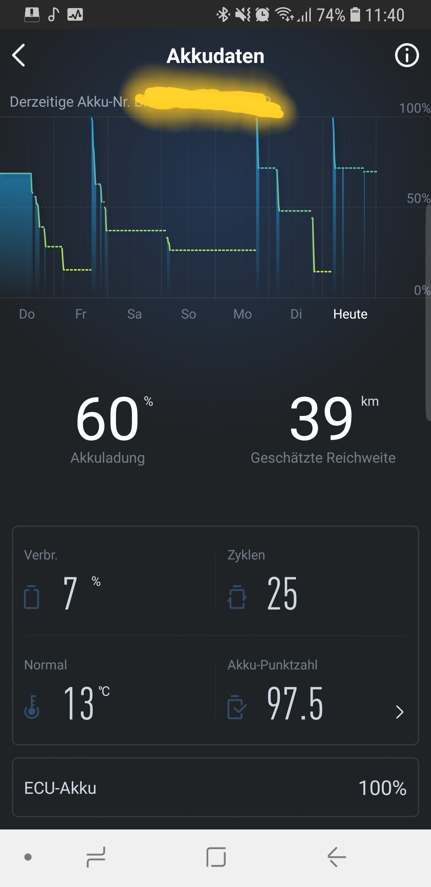 Bei mir ist Verbrauch auf 17% bei der Akkuladung von 83%. Da ich bei 100% losgefahren bin, könnte ich mir vorstellen, dass es der Verbrauch der letzten Fahrt oder seit der letzten Ladung ist.