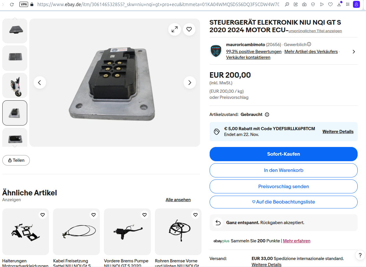 Ich bin mir jetzt nicht ganz sicher, abrer das könnte doch eine gebrauchte für den N-GT sein? Die offizielle Bezeichnung des NIU N-GT lautet ja NQI-GT Pro:HotSummerNites.at hat geschrieben: ↑So 9. Nov 2025, 15:48Wo bekomme ich eine ECU her, zumindest ausborgen zum testen?