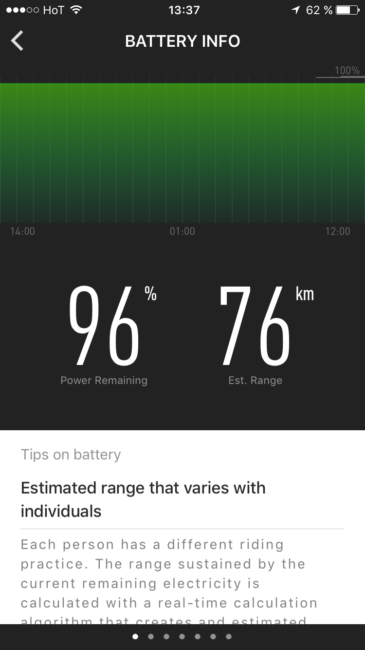 Bin neu hier im Forum und würde gern wissen ob irgendjeman schon mehr in der App im Batteriestatus oder in der Fahrstatistik angezeigt bekommt als nur einen geraden Strich? Hier sollte ja eigentlich der Prozentsatz über die Zeit über eine Kurve dargestellt werden. Weiters sehe ich egal wie oft ich den Scooter per Tag fahre immer nur eine Nadel und keine Daten unter Tag/Woche/Monat.