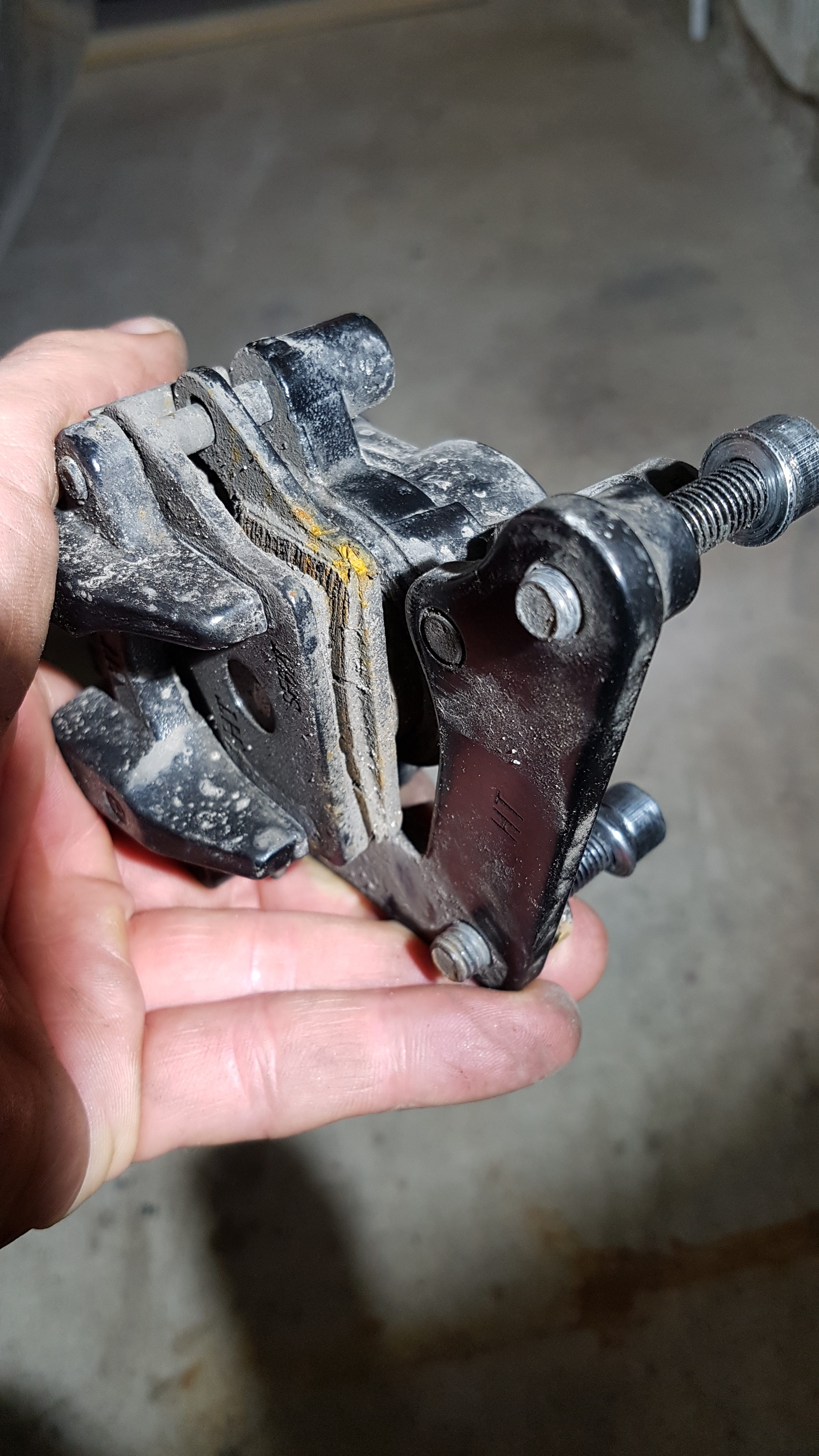 Den Kolben hab ich mit einem Kolbenrücksteller zurückgedrückt. Besser ist das. Zu den Führungsbolzen, die waren fast trocken obwohl ich sie dünn mit Lagerfett ( es gibt auch anderes Fett dafür aber ich hatte es noch da ) eingerieben hatte.