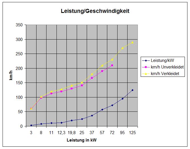 Hab mal bisschen in der Verbrennerwelt recherchiert, was grobes Verhältnis (basierend auf auf Erfahrungswerten) bezüglich Leistung/Geschwindigkeit angeht und mal ein Diagramm davon gemacht, deine 12,3 kW hab ich mal inkudiert.... passt ;)