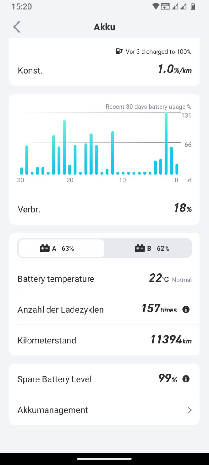 - 05.451km | NIU NQi GTS Pro __ | EZ 06/2020 | 1. Akku | 066 Zyklen | @ MarcusKabele (Akku B = 64 Zyklen)