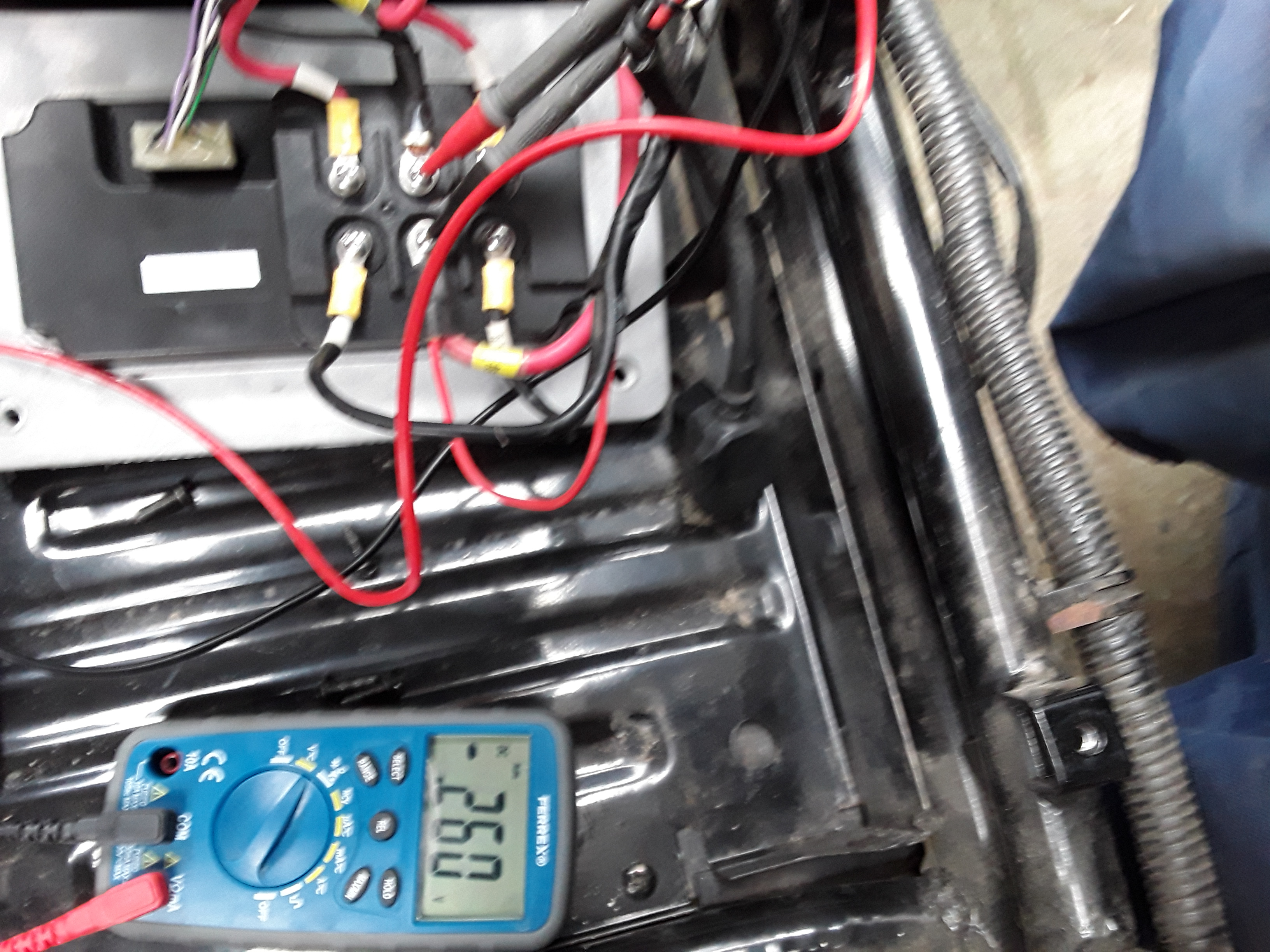 2. Spannung zischen Schwarz und der anderen Seite der Schmelzsicherung messen: damit wissen wir, ob die Sicherung ok ist.