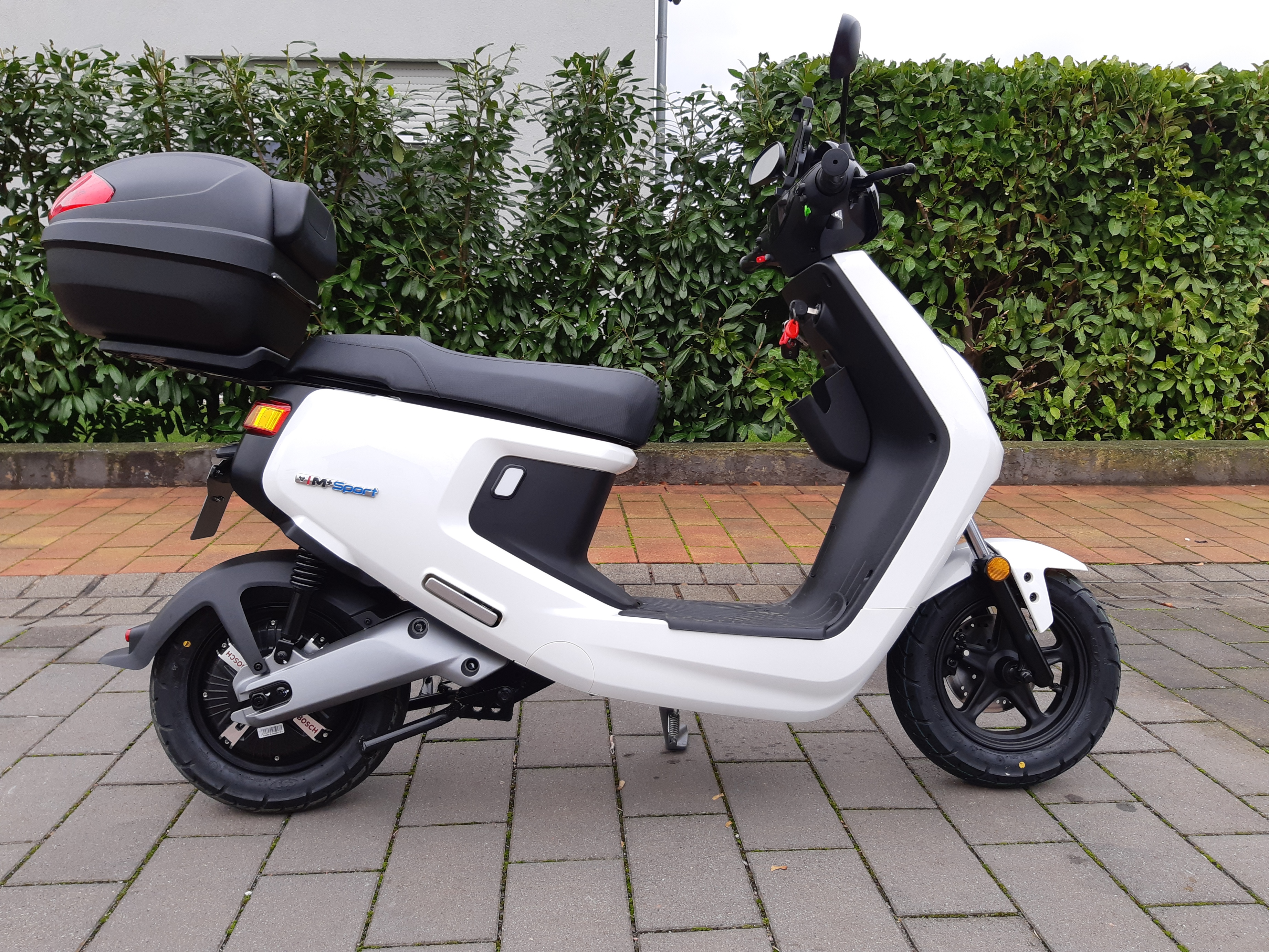 Anbei ein Bild von meinem weißen M+ mit Givi Topcase. Auch von mir ein dickes Lob an die Niu Store Frankfurt. Ich habe meinen leider aufgrund der Distanz nicht dort gekauft, aber ich wurde dort top beraten. Auch hatte man mich dort als einziger Shop, von dreien die ich besucht habe, auf die Indiegogo Pre-sale Campain hingewiesen und hat mir diese empfohlen. Die anderen Händler wußten angeblich nichts davon oder streuten große Zweifel an dem Liefertermin ein. Auch wurde mein Roller ohne die aktuelle OTA Version ausgeliefert und lief (oder zeigte an?) nur 41km/h. Ein Anruf beim Niu Store Frankfurt und ich bekam den entscheidenden Tip. Nur als Tip an alle die sich auch über die zu geringe Geschwindigkeit wundern und einen ähnlich kompetenten Händler haben wie ich