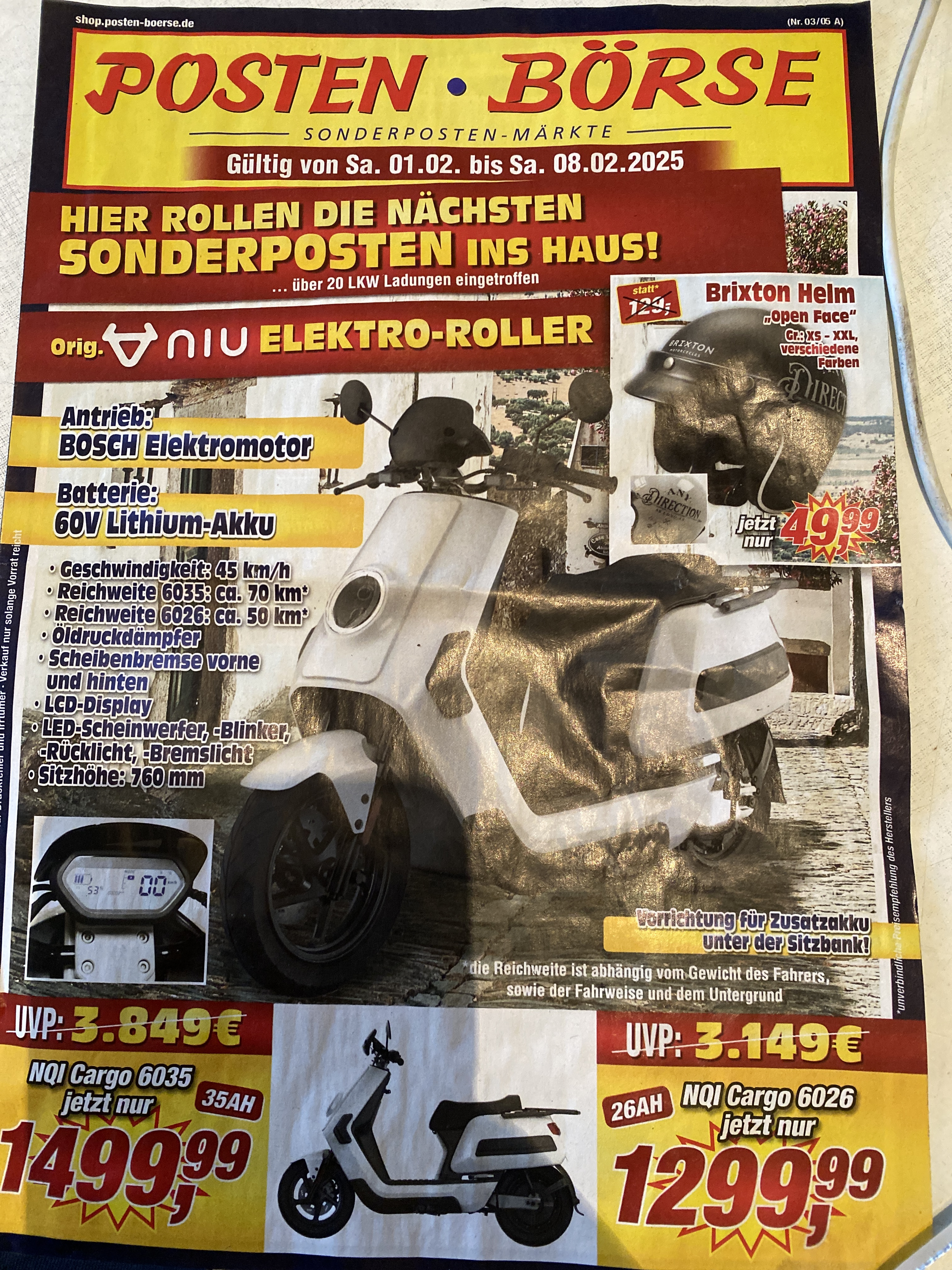 Re: Großer Posten Niu E-Roller 6026 u. 6035 kommt am 31.01.2025 auf den Markt.