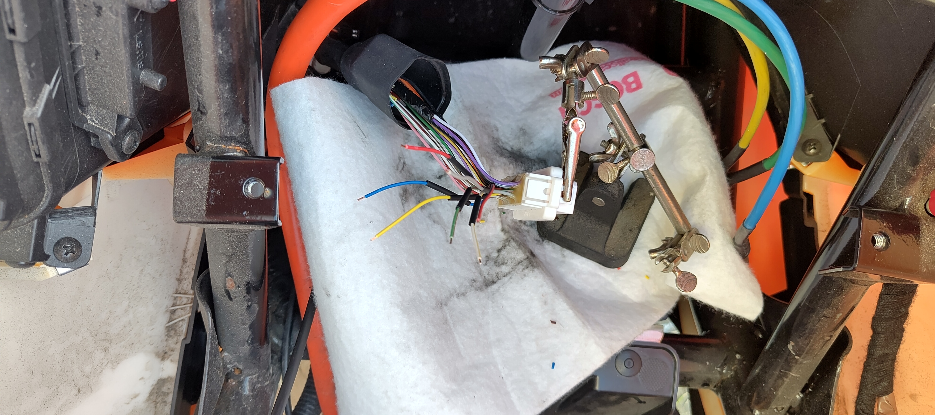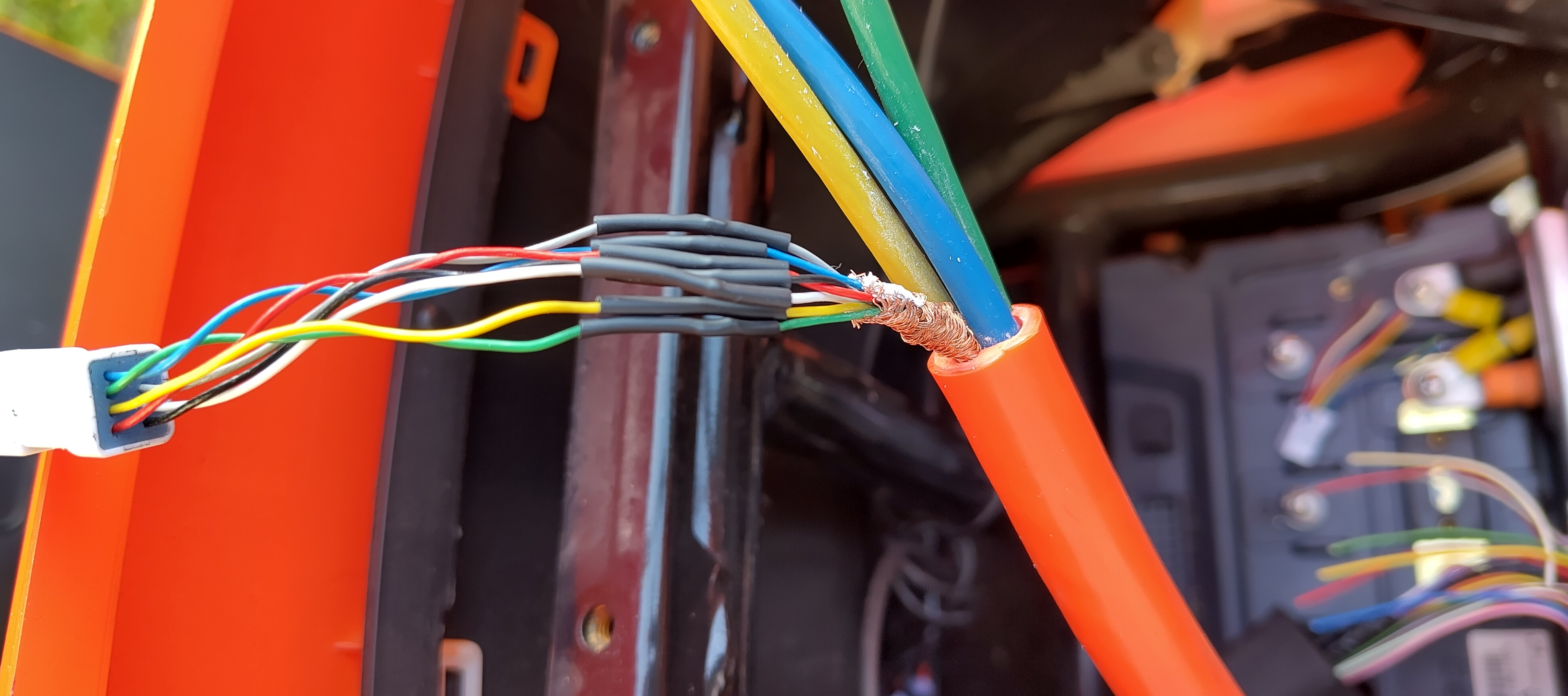 Gut Problem ist hinreichend bekannt, heute war schönes Wetter... hab jetzt auch nicht lange Fehler gesucht, sondern den Hallsensor Controller Stecker direkt an die FOC gelötet. Hab auch das vermurkste Kabel vom Stecker zum Motor neu angelötet, da war auch so ein komisches silikonähnliches Zeugs drinnen. Hab erst den Motorstecker und den FOC Stecker durchgeklingelt, war aber unnötig, die Farben sind 1:1 durchverbunden gewesen, also einfaches löten.