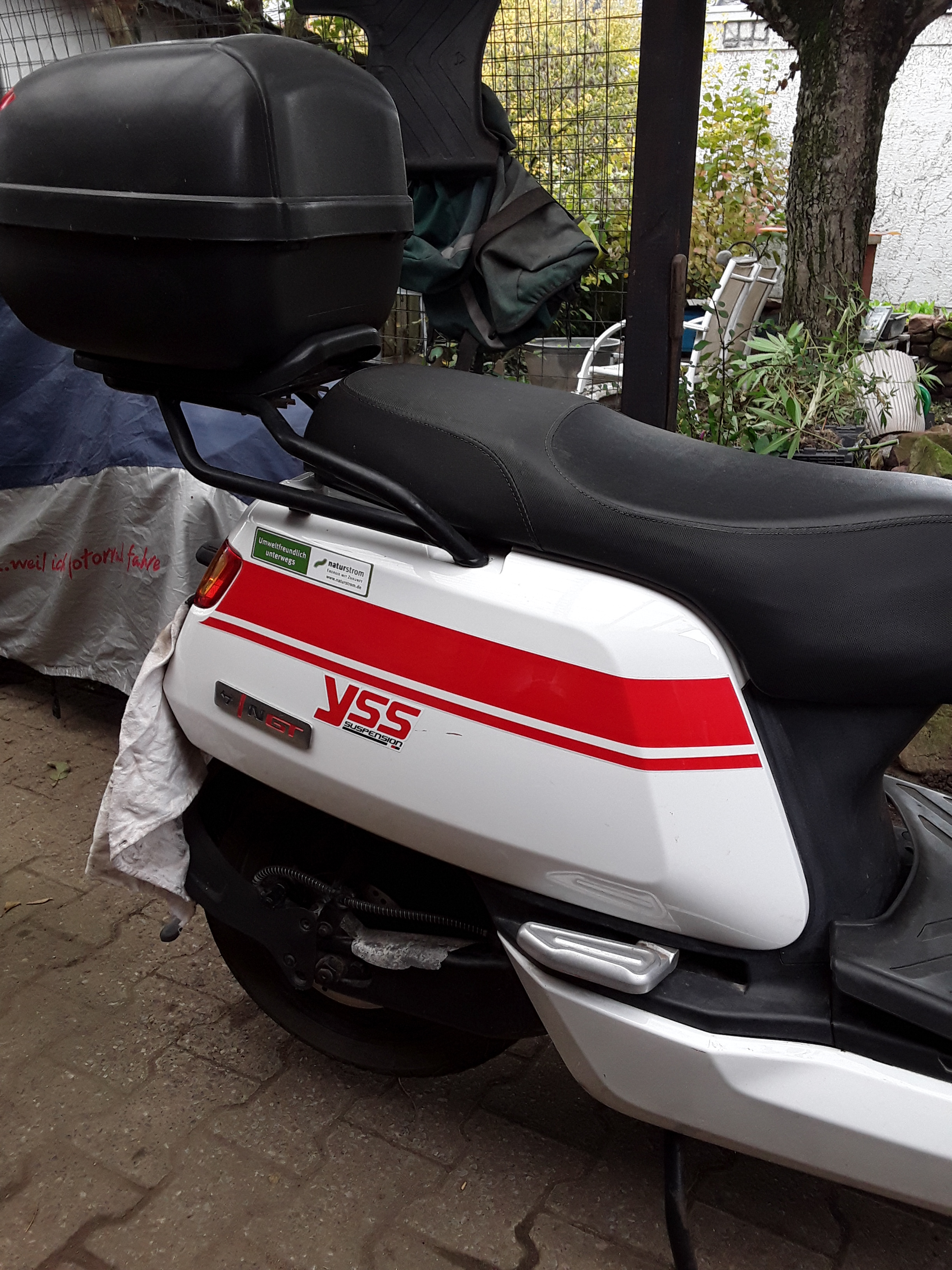Inoa S5-Li + 2. Akku + 2 Ladegeräte mit je 7A => Original 4A-Lader verkauft. 11/2023 12A China-Ladegerät gekauft und umgebaut. Seit 11/2022 Tuning-Controller verbaut. Windschild (empfehlenswert) seit 03/2022. Gesamtpreis per 01/2022: 2.930 €.