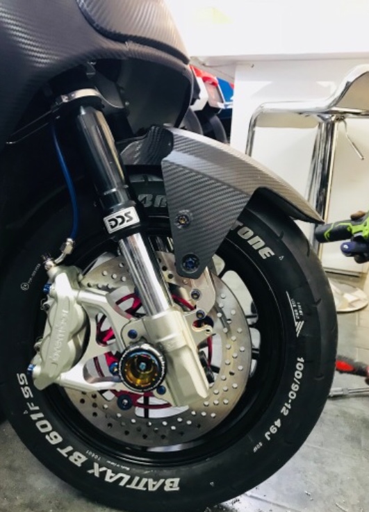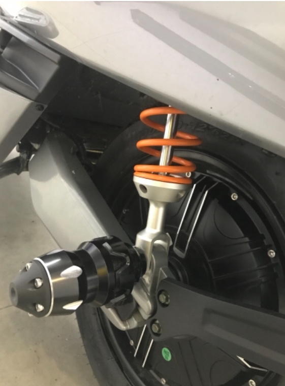Sehr konsequent finde ich es zudem, dass man dem auf die Sprünge geholfenen E-Hobel auch eine dem gestiegenen Speed angepasste Bremsanlage spendiert. Ob es gleich mit ABS sein muss, da scheiden sich sicherlich die Geister und ein deutscher TÜV-Prüfingenieur würde den ABS-einbauenden E-Rolleristen vielleicht sogar gern einsperren wollen, aber es hilft in der Not und ich würde soetwas auch für Roller der 45er Schleichgarde ab Werk begrüssen.