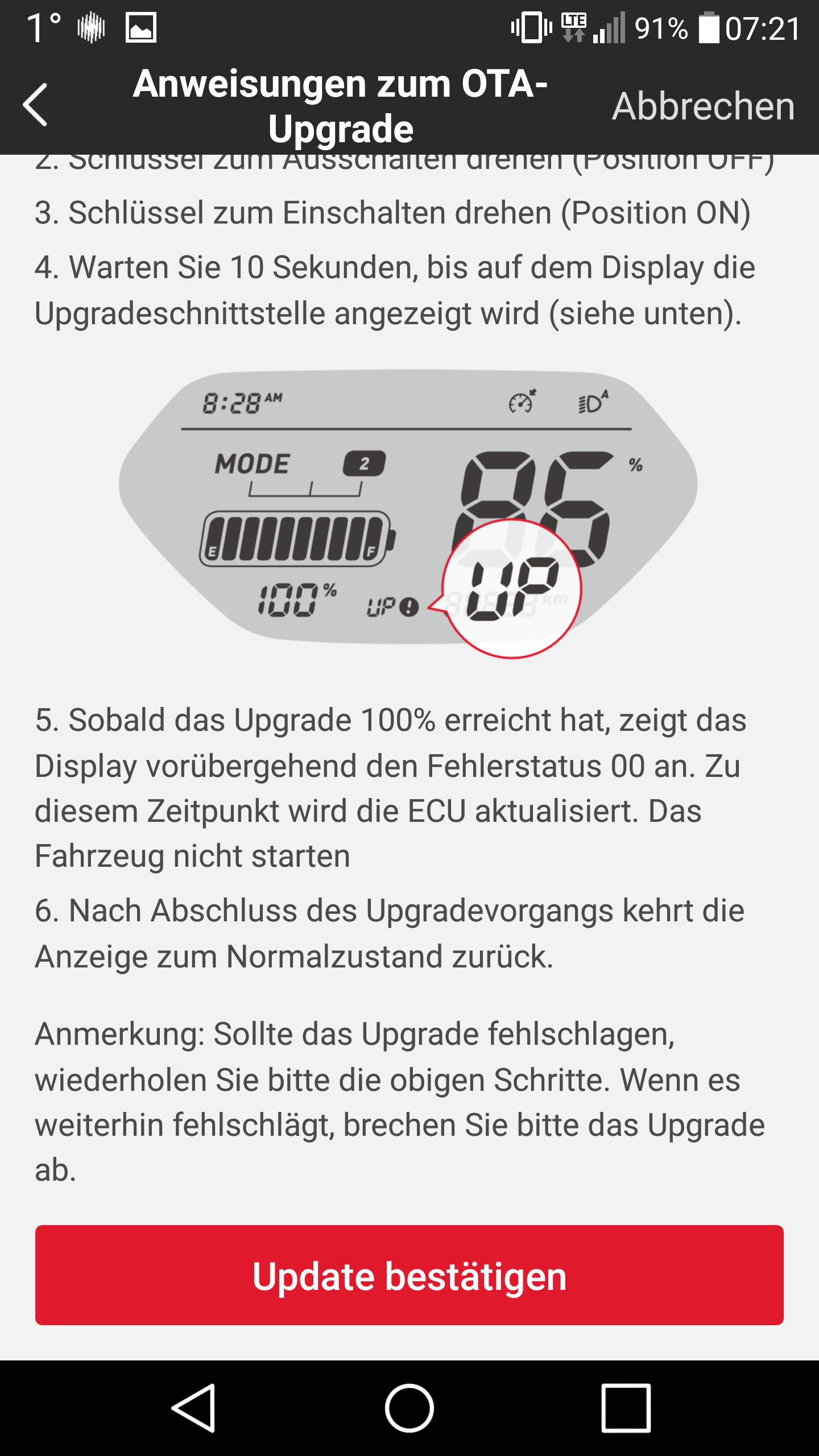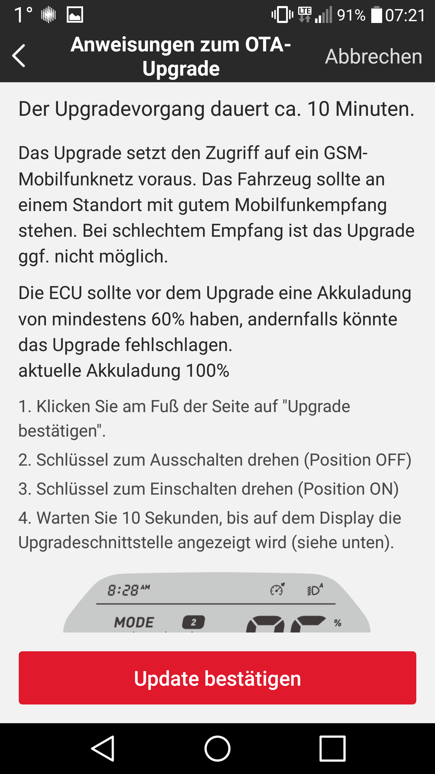 In der App stößt man den Daten-Push auf den Roller an, der das Update tatsächlich über Mobilfunk geliefert bekommt.