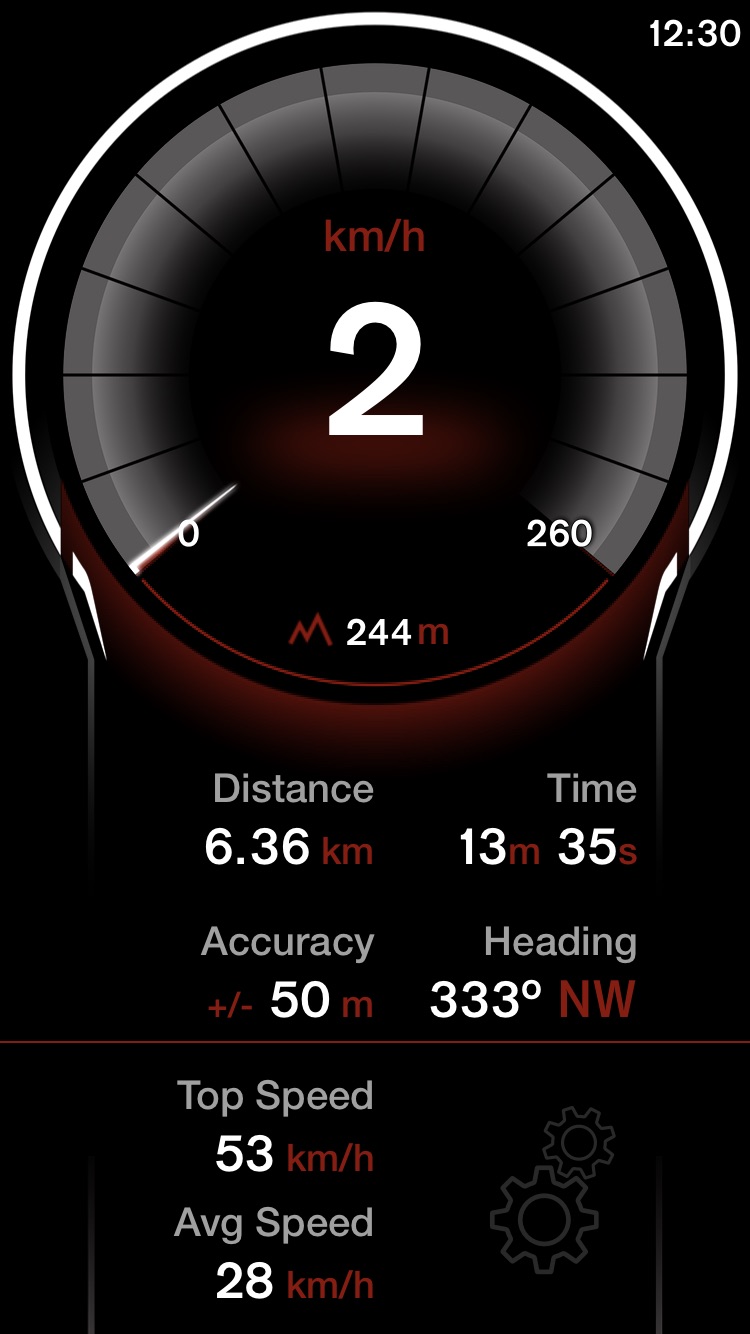 Gemessen hab ich mit der GPS Speed App eine Geschwindigkeit von 53 km/h.