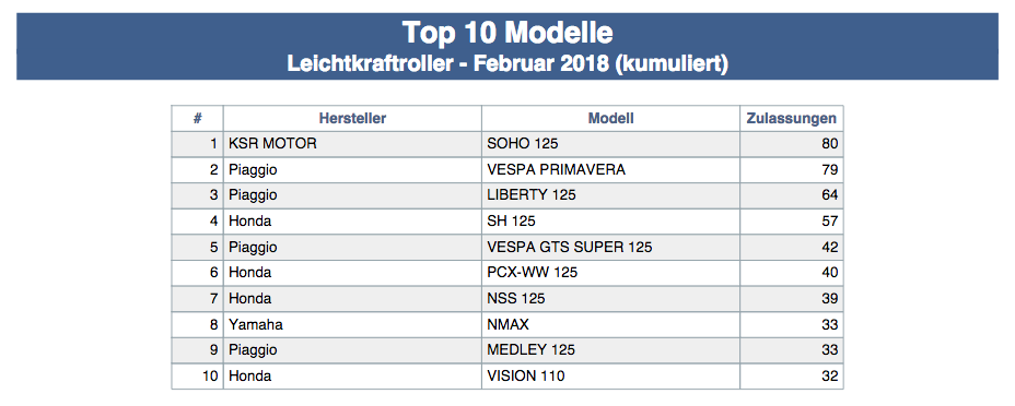 Es geht hier um die Zahlen/Statistiken zu LeichtKraftroller TOP 10 (eagl ob Verbrenner oder Elektro).
