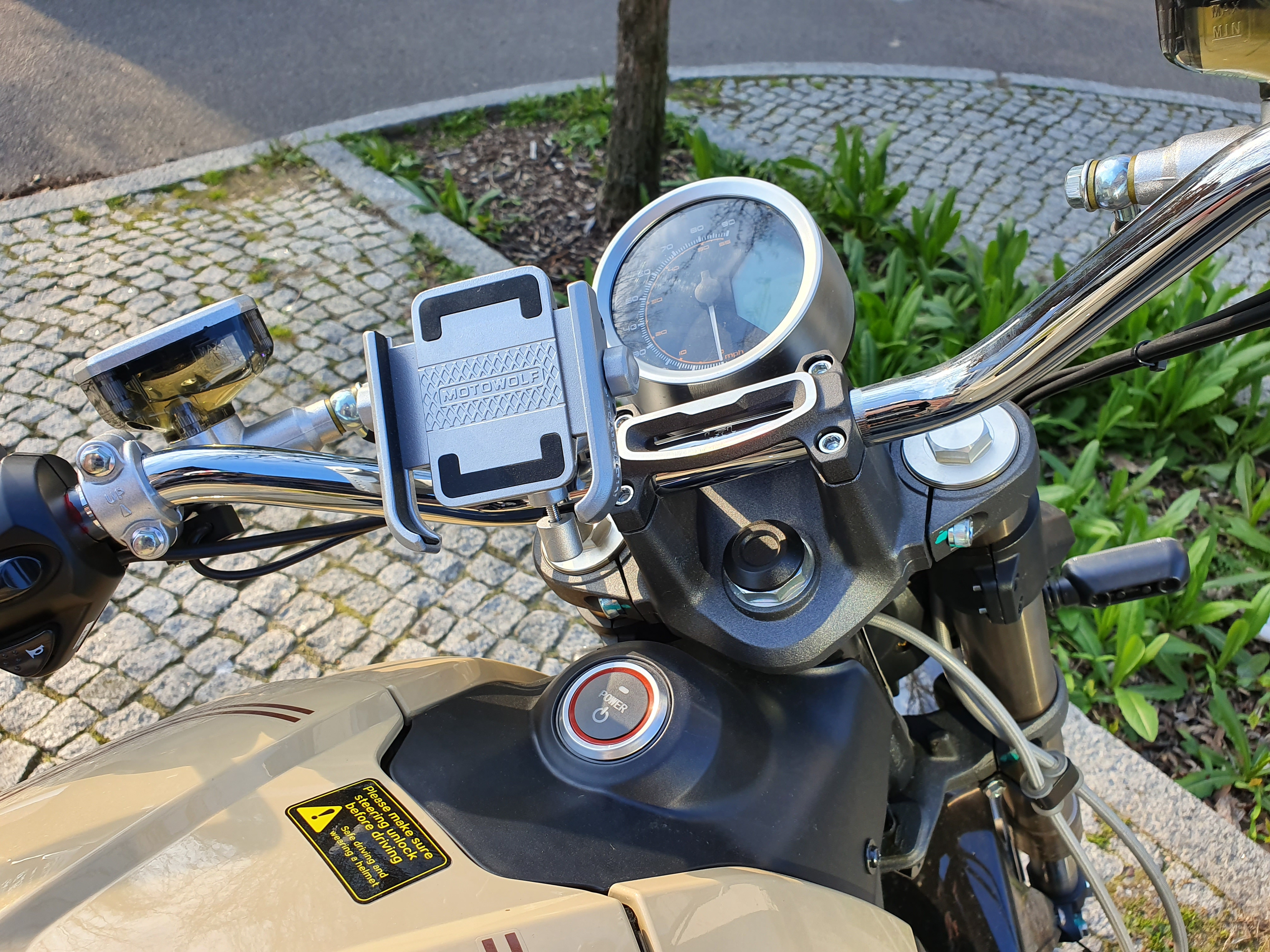 Ich bin mit dieser einfachen Halterung sehr zufrieden. Sitzt fest auf dem Lenker und durch den Arretierungsschalter an der Rückseite kann das gute Telefon auch nicht rausfallen. Durch verschieden dicke Schaumstoffaufkleber für alle Handystärken wackelt auch nichts.