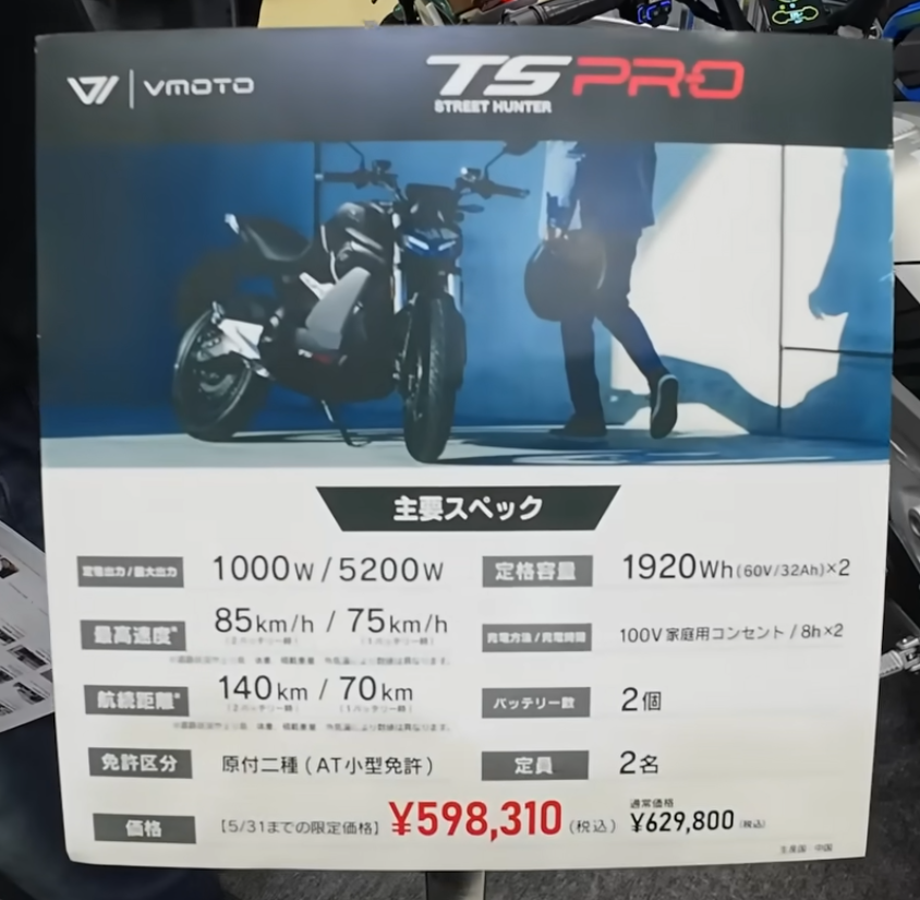 Hier mal ein Bild von der "Tokyo Motorcycle Show 2024": Laut Währungsrechner sind 629.800Yen UVP ca. 3.850EUR die dort angepriesen werden.