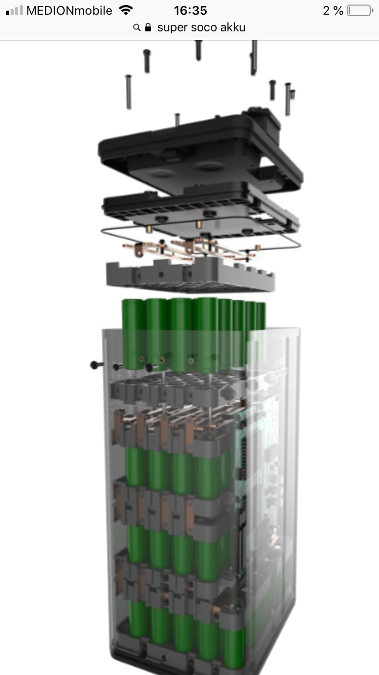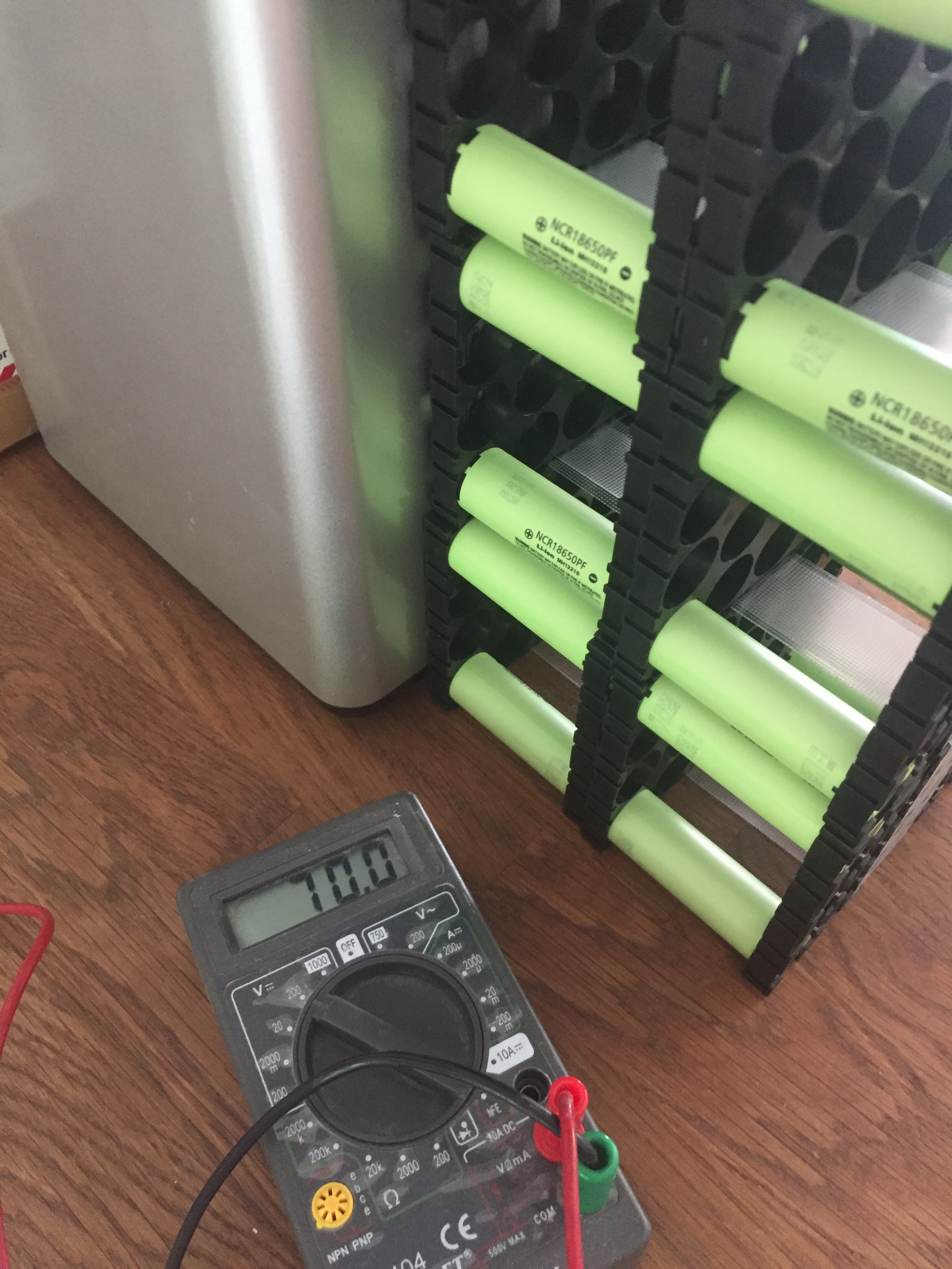 Momentan sieht es nach 17s 11p aus (61,2 Volt / 31,9Ah)
