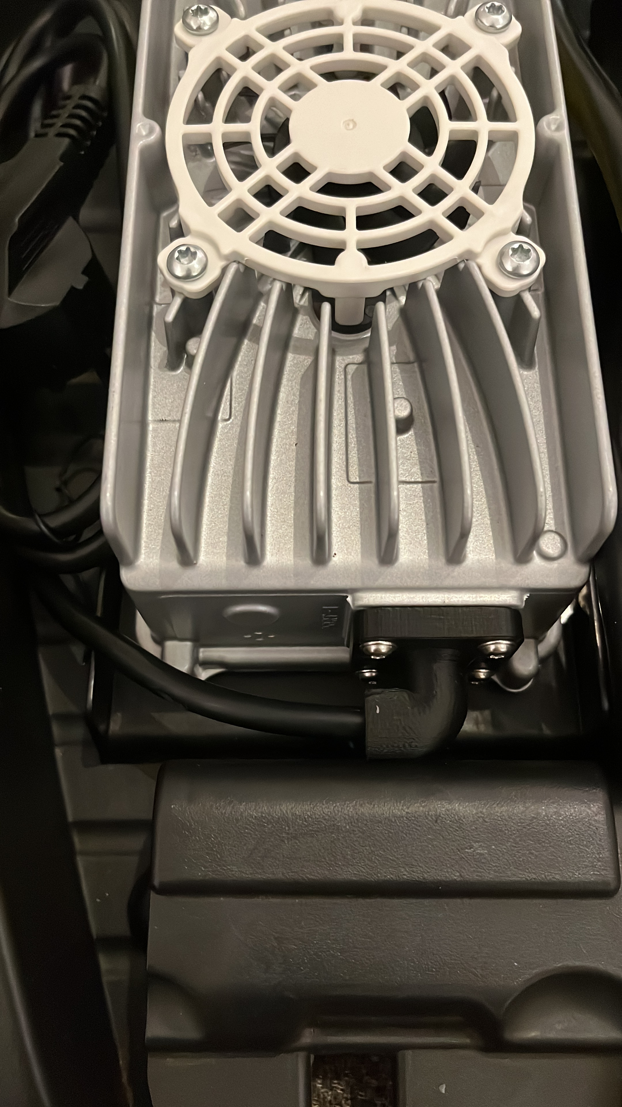 Ja, das sollte ein Plätzchen bekommen, wo die Lüftung funktioniert und der Lüfter auf dem Gerät nicht im Spritzwasser/Schlamm ertrinkt. Muss mich bei Gelegenheit mal auf die Suche begeben. Angeklemmt hätte ich es parallel zur Ladebuchse an der Seite (die dünnen Adern müssen auch angeklemmt werden). Und eventuell noch einen Einbaustecker C13 mit Spritzschutz (zum Anschluss eines Kaltgerätekabels).