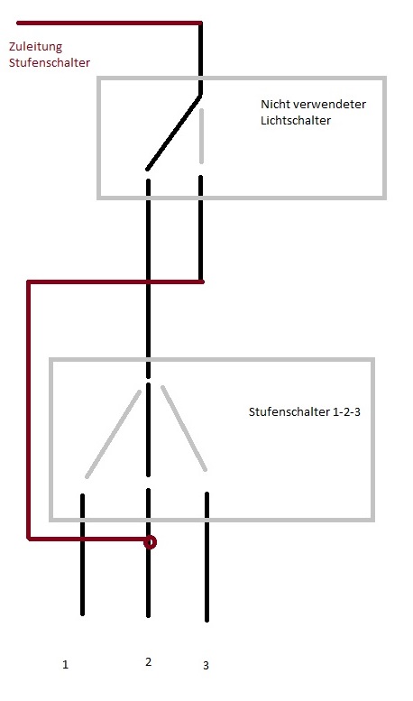 In den Fahrstufen Schaltet gehen vier Kabel rein. Kabel 0- 3. Einfach Kabel 3. kappen und das Kabel 2 an den Port für Stufe 3 mit anschließen. So hat man einmal die Stufe 1 und zweimal die Stufe 2.