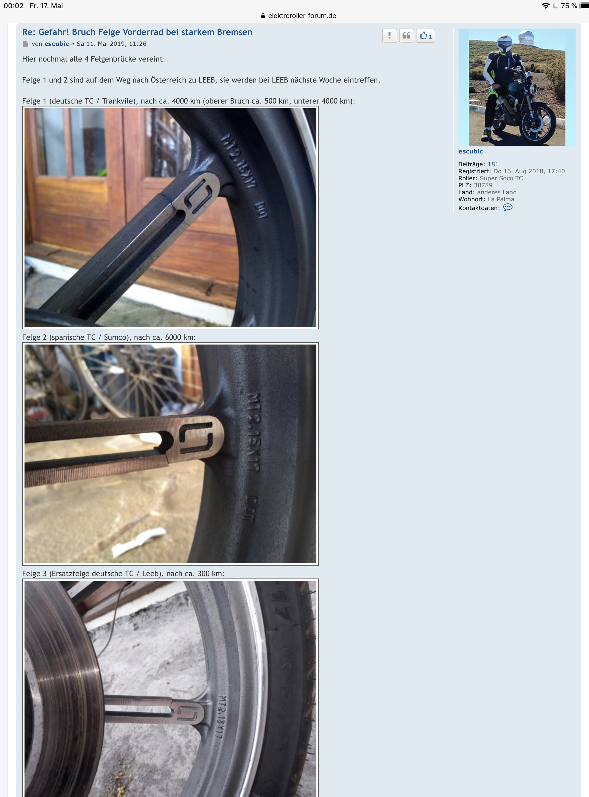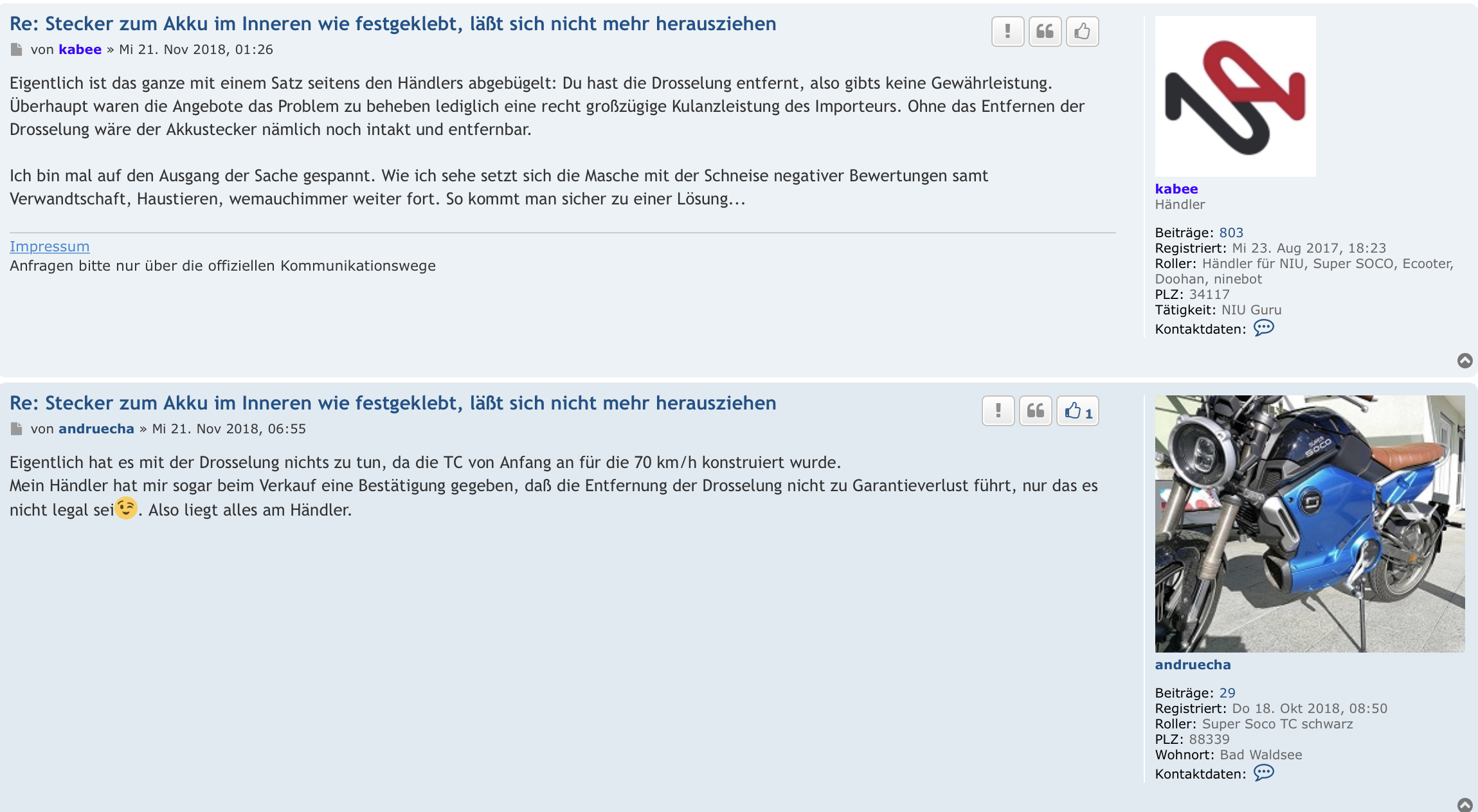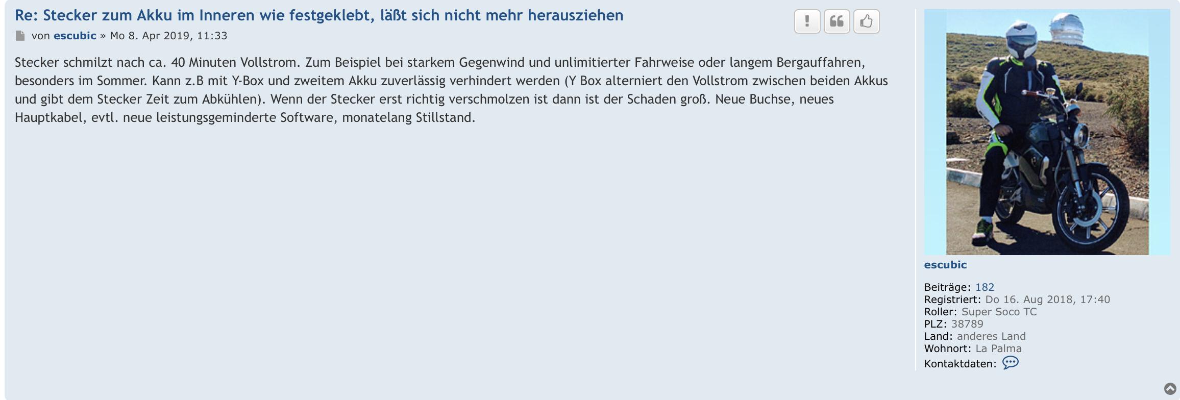 Das schlimmste was uns alle samt aber treffen könnte wäre schlußendlich evtl ein verkaufsverbot der Super Soco's.