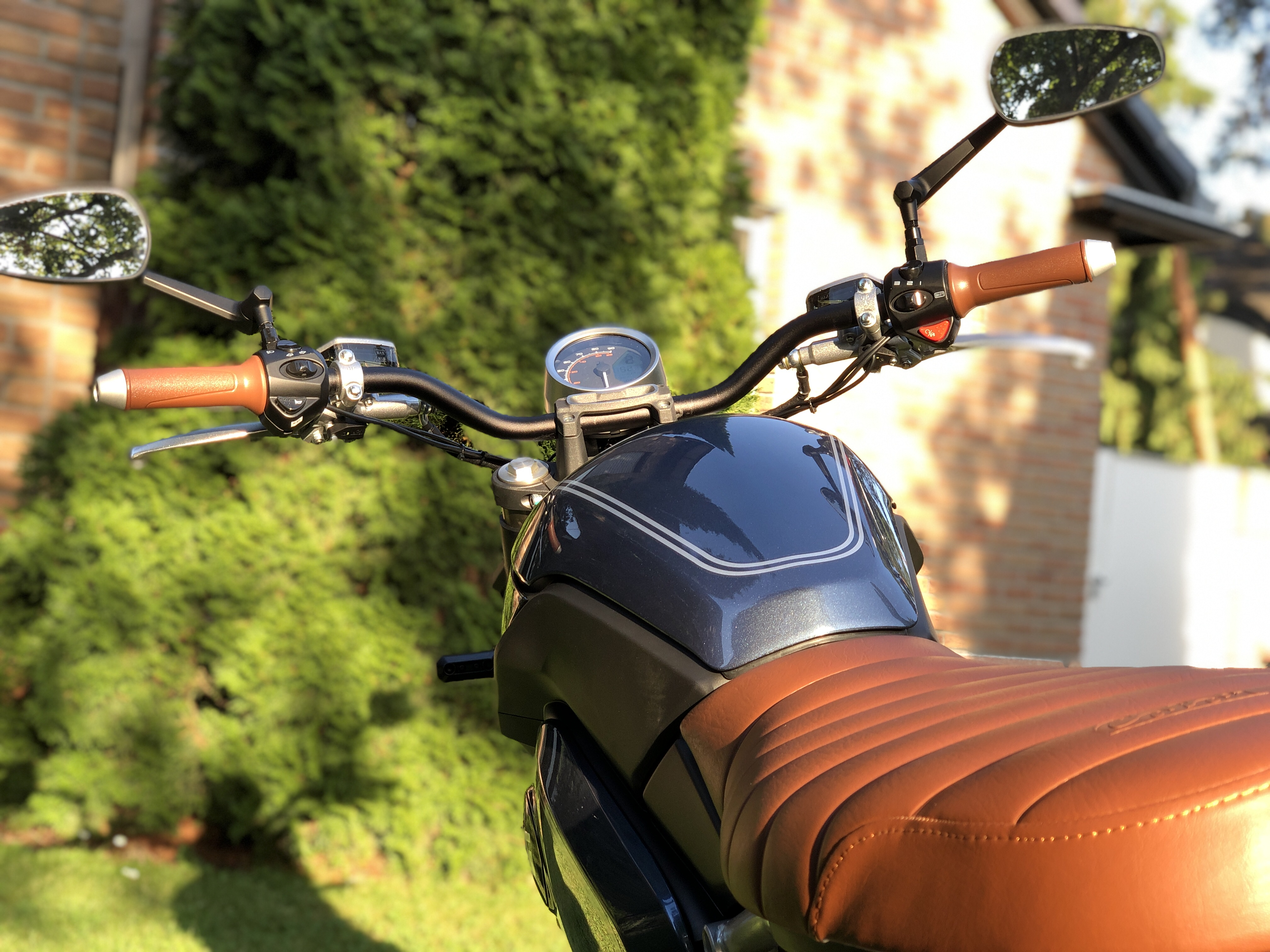 Bei mir sind gestern der flache, schwarze Lenker und die Spiegel eingezogen: