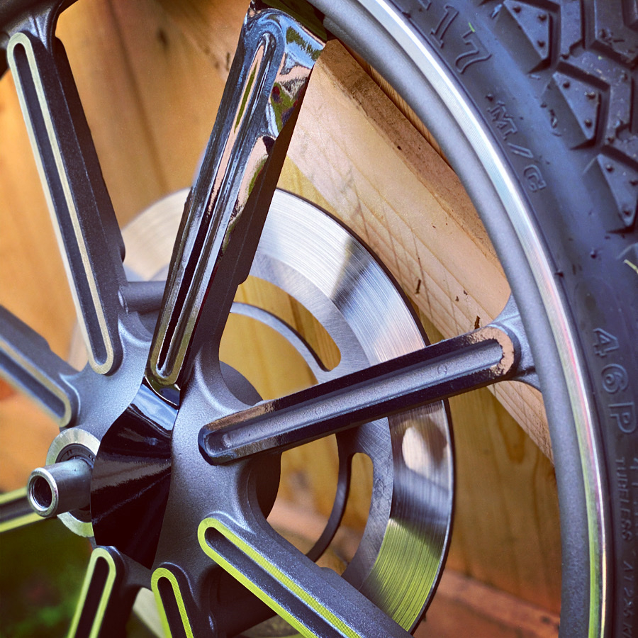 Schwarze Speichen ( foliert) und Michelin Street Pilot :