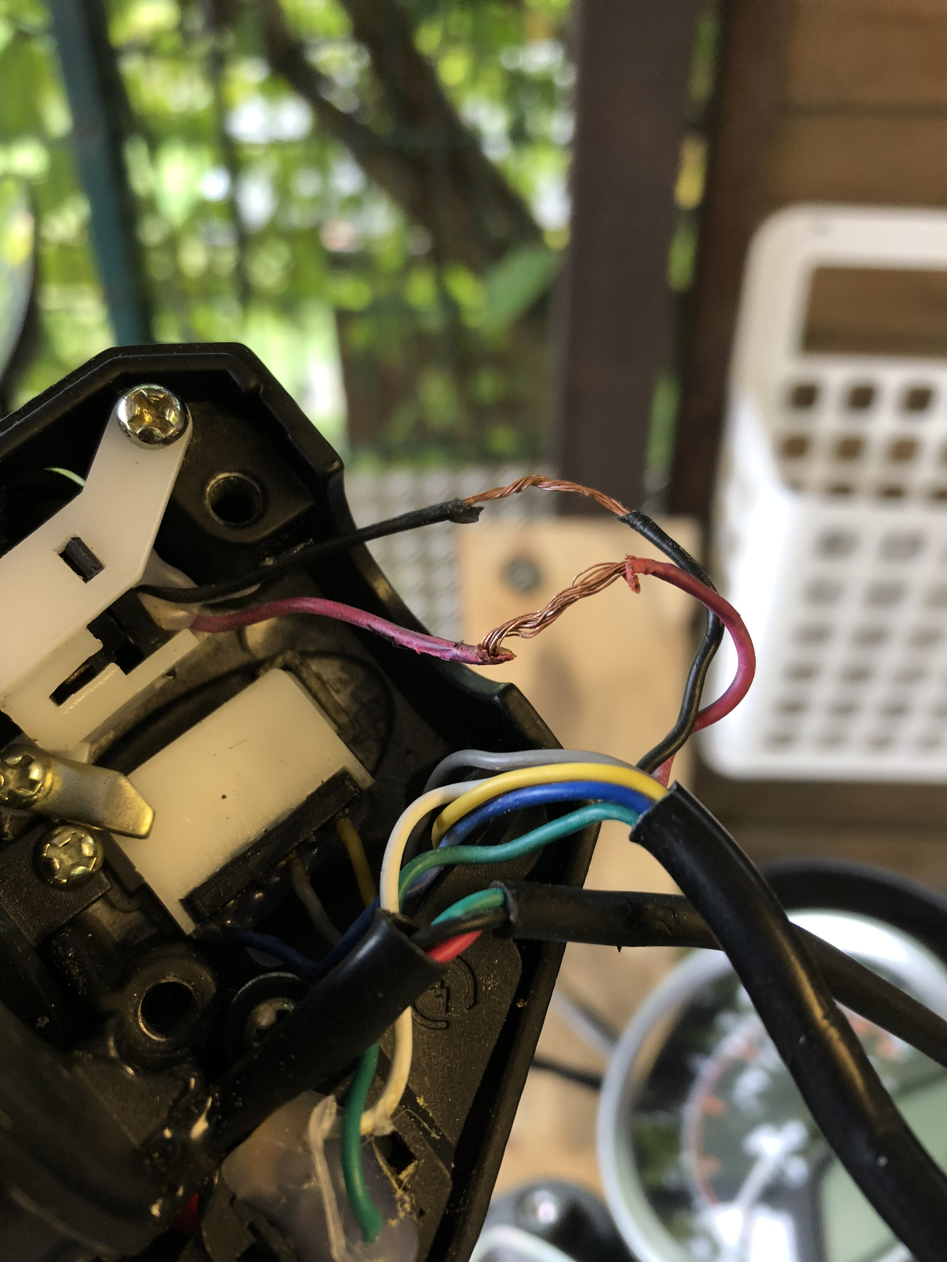 Und dann habe ich das grüne Kabel der Soco an das rote Kabel (Bremslicht) des Rücklichts, das Schwarze ans Schwarze und das eine braune an das graue Kabel. Da blieben ein weiteres Braunes und ein weitere Schwarzes übrig, die hängen einfach so in einer extra Lüsterklemme...
