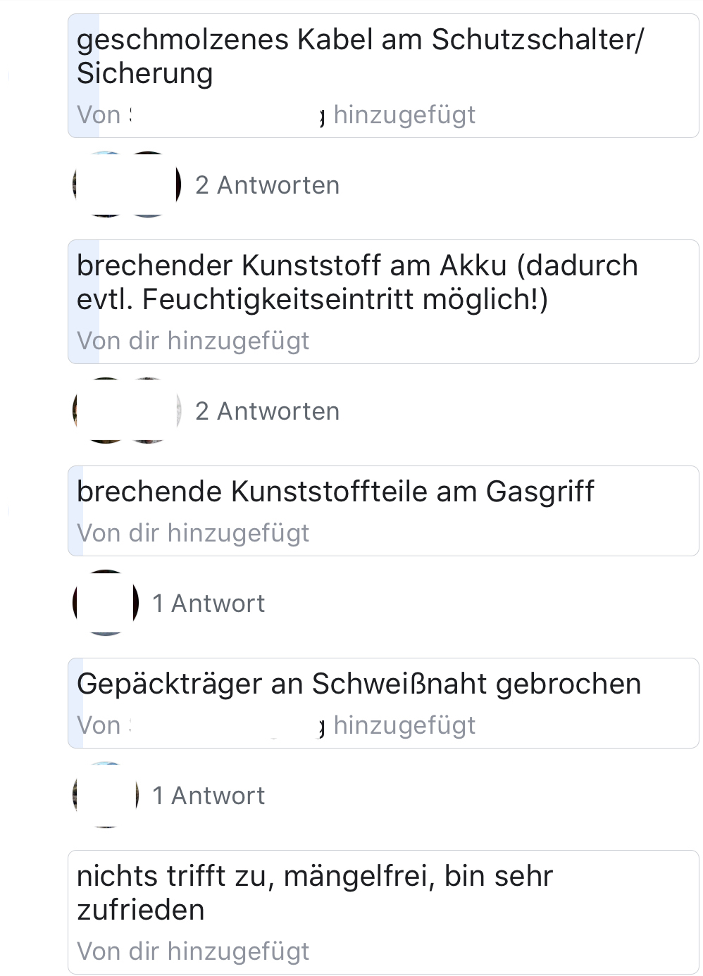 Was mich an dieser Dauerübertreibung wirklich frustriert und auch ein bisschen nervt, ist, dass eine Handvoll Leute gerade dabei ist, ein Fahrzeug in die Tonne zu schreiben, das von den meisten Nutzern wirklich geliebt und gelobt wird. Felixyz und (an anderer Stelle) Orik haben schon darauf hingewiesen: Die Soco hat dann eine Zukunft, wenn Händler und Werkstätten im Boot bleiben bzw. vermehrt zusteigen. Und wenn ich mir vorstelle, ich als Händler würde die Soco für mein Sortiment in Erwägung ziehen und dann hier und anderswo von "vielen unzufriedenen Kunden" und "25% Fahrzeugen mit gravierenden Mängeln" lesen? Dann würde ich sofort auf Abstand gehen, auch wenn die Behauptungen völlig aus der Luft gegriffen sind. Also schaden diese Übertreibungen uns allen - sogar denen, die sie selbst in die Welt setzen. Weil sie an dem (Support-)Ast sägen, auf dem sie selber sitzen. Glückwunsch dazu. :(