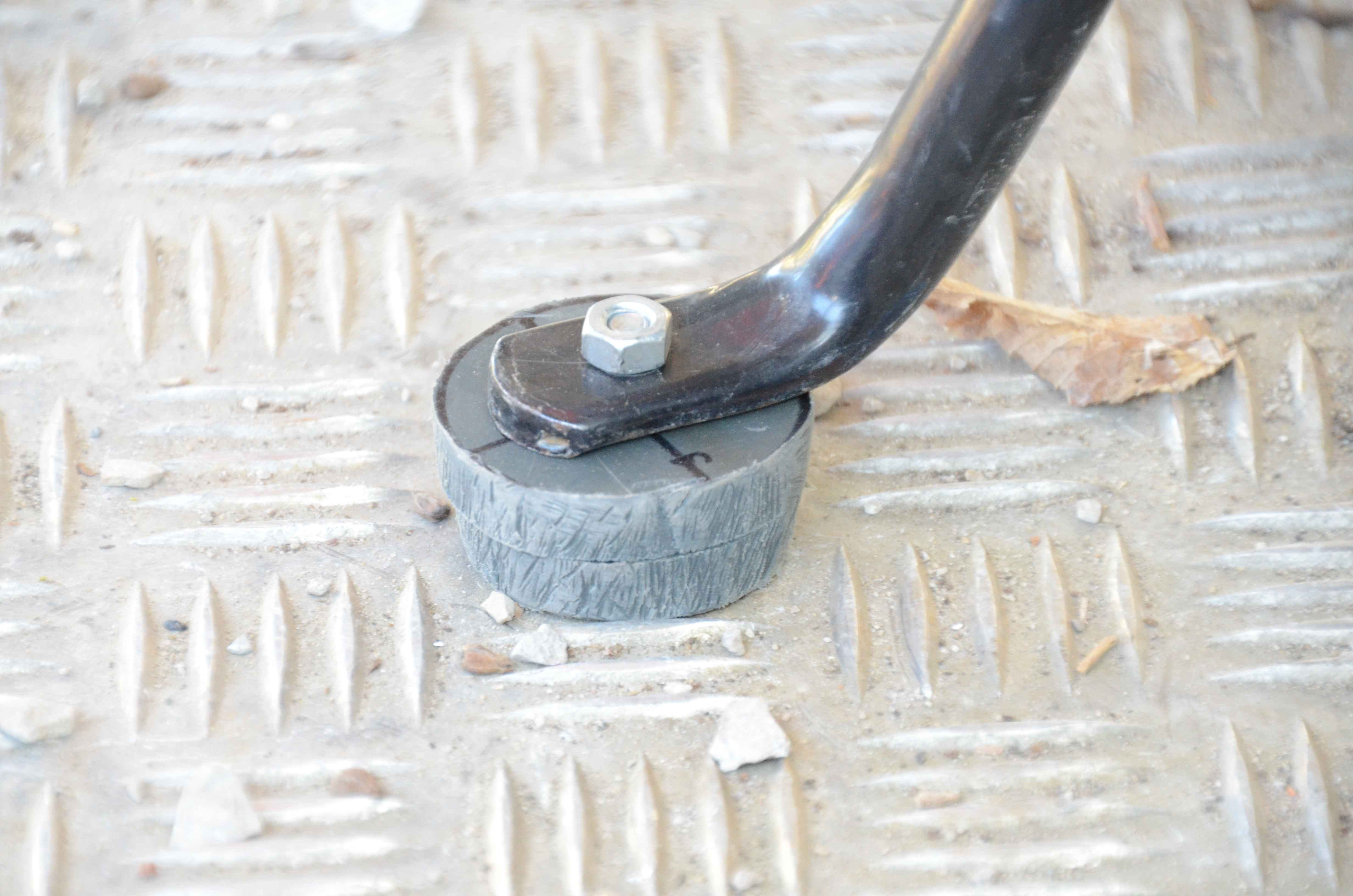 Zu bedenken ist, daß auch der Seitenständer durch den 2cm größeren Radius des Reifens "kürzer" wird. Meine, nicht so wirklich schöne, Lösung ist hier im Bild: