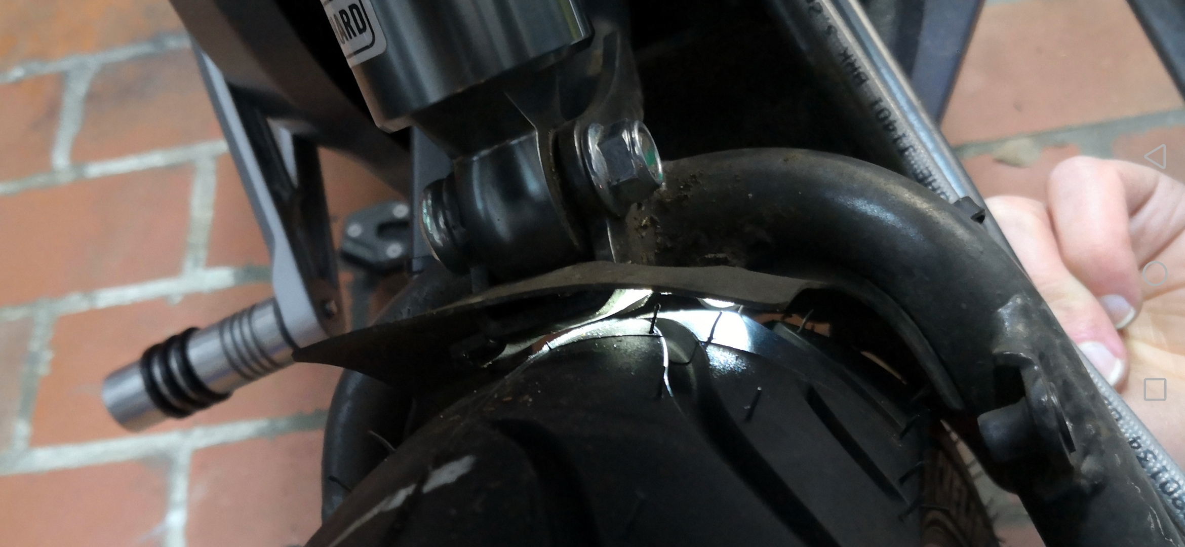 Das Problem des schleifenden Reifens ist der kurze Kotschützer der TS, siehe Bilder: