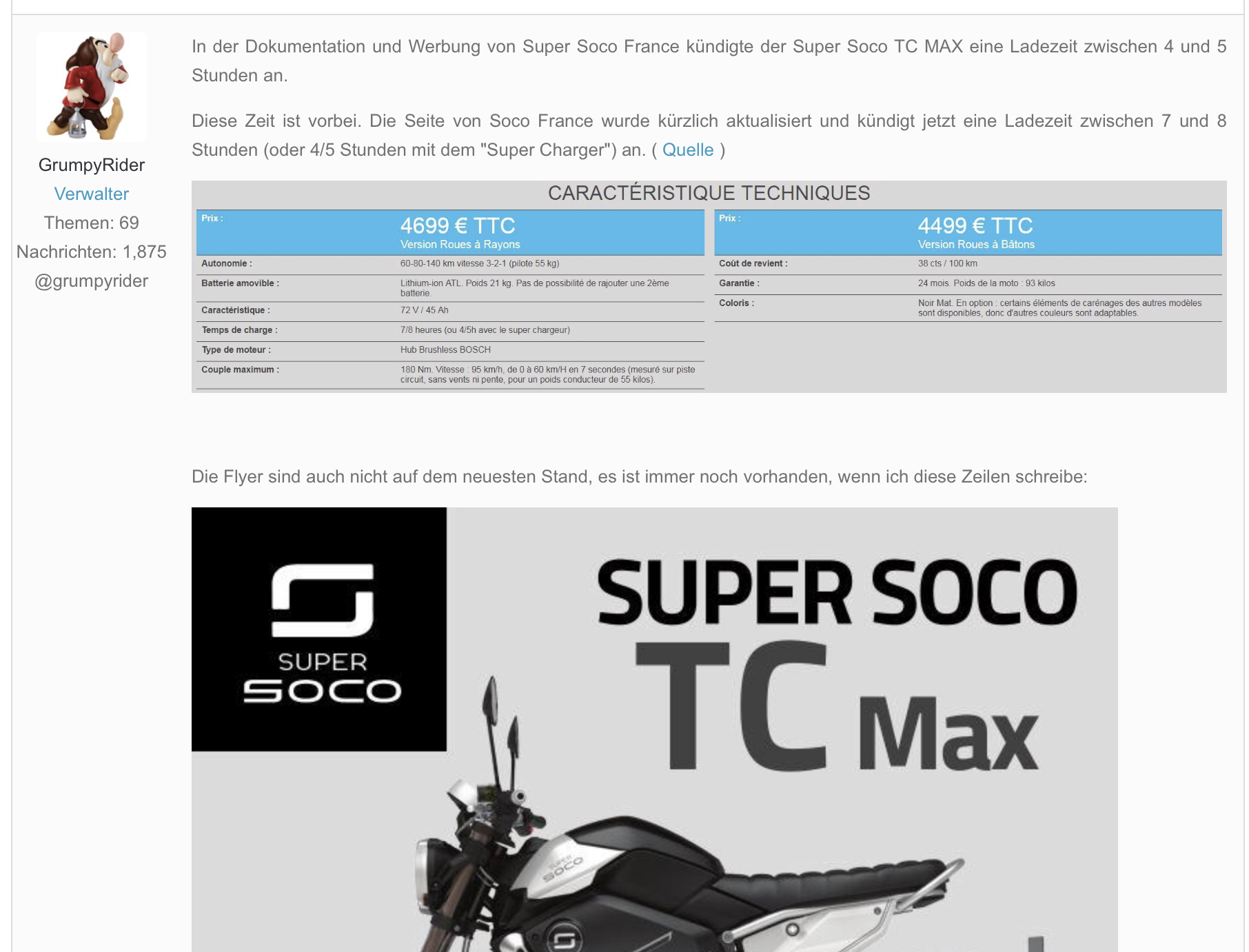 - Roller: Super Soco TC 2018 (BT4.0 fehlt, VR-Felge ()() )